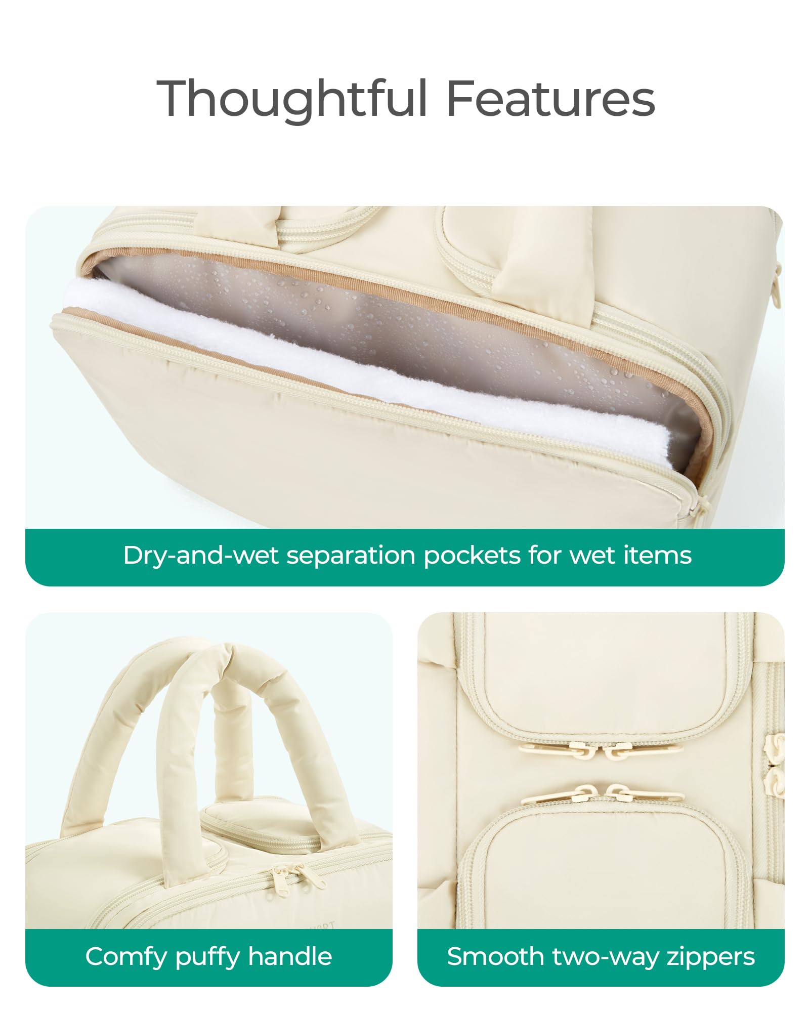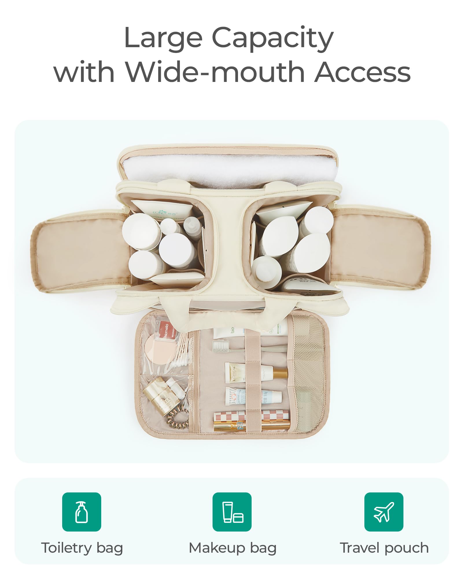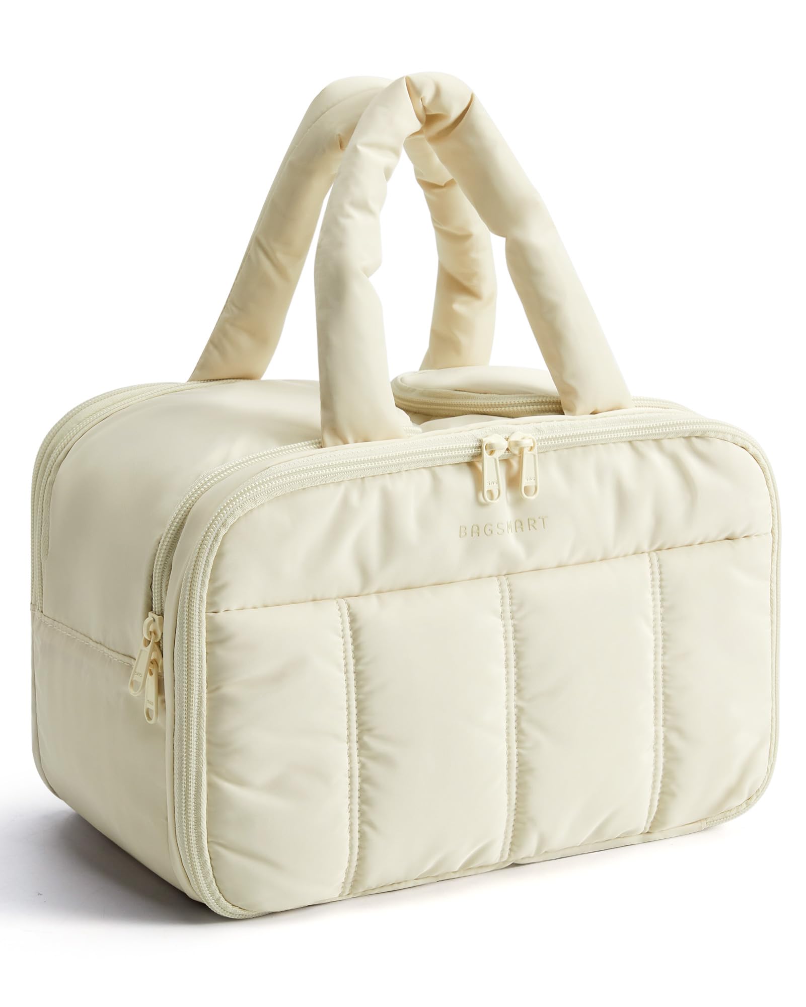 BAGSMART Travel Toiletry Bag, Puffy Large Toiletry Bag for Women, Lightweight Cosmetic Makeup Bag Organizer with Handle for Traveling, Accessories, Essentials, Toiletries (Beige