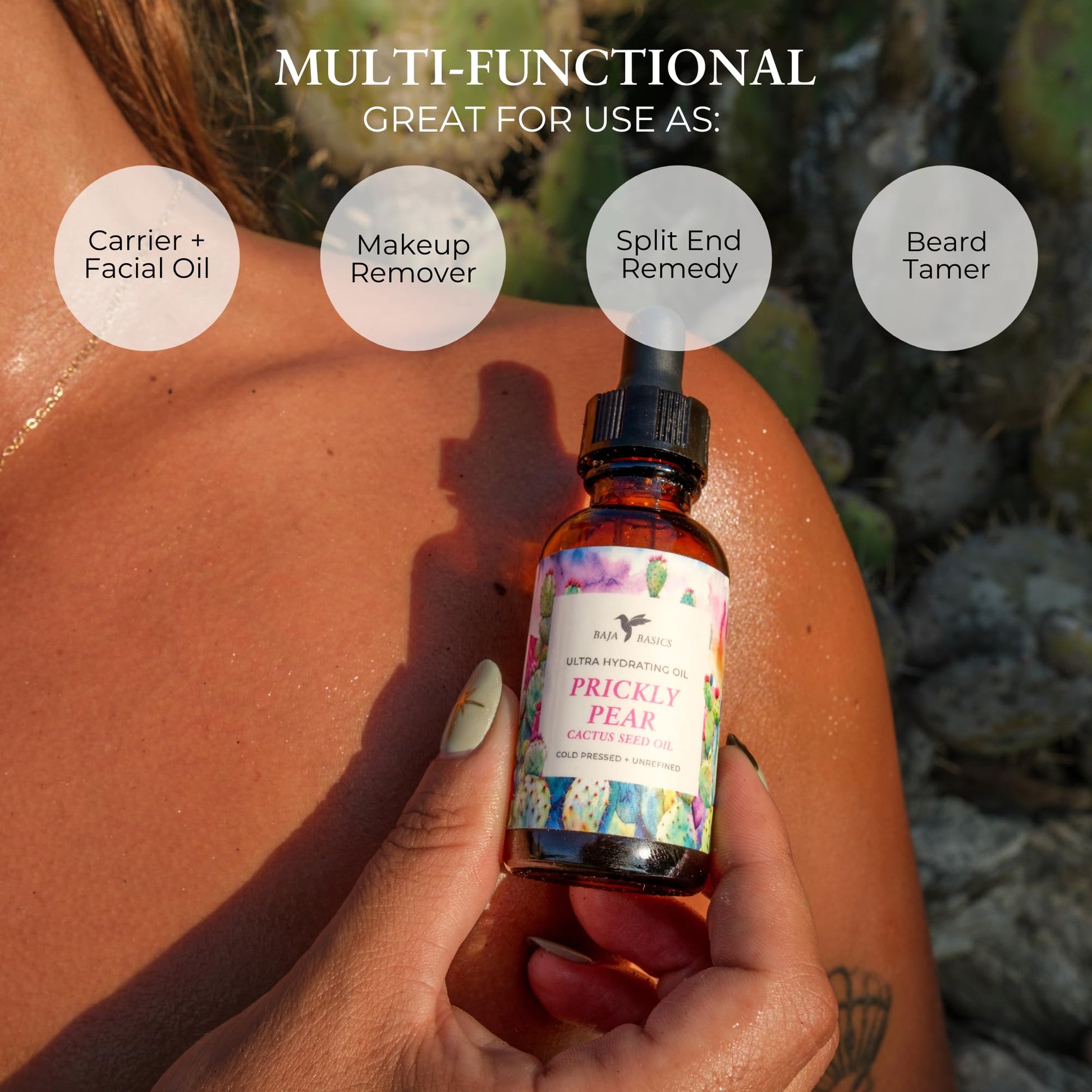 Baja Basics Prickly Pear Seed Oil Cold Pressed, Pure, Unrefined Moisturizer for Skin, Face, Body, Nails and Hair - Multi-Purpose Beauty Product For Men and Women - 1 oz Bottle