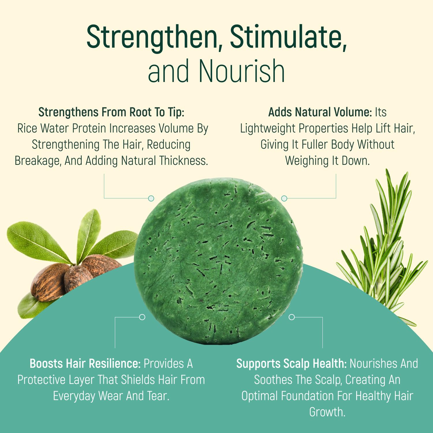 - ✔ Strengthens from Root to Tip – Enriched with 100% natural rice water protein, rice amino acids, and vitamins B7 & C, this shampoo bar helps fortify hair, reduce breakage, and boost natural thickness.