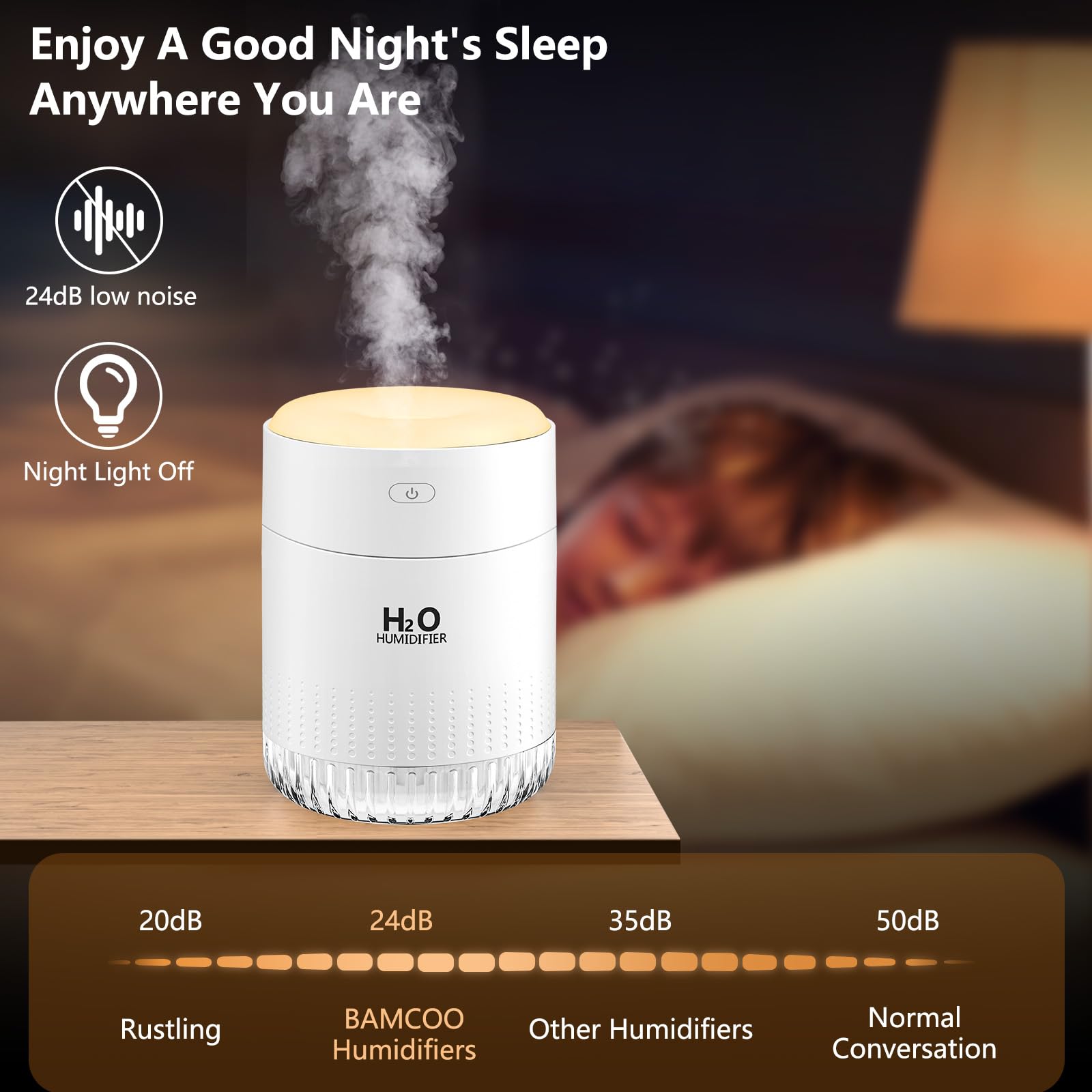 - Night Light Function: The humidifier operate quietly and comes with a night light function, perfect for placing bedside.