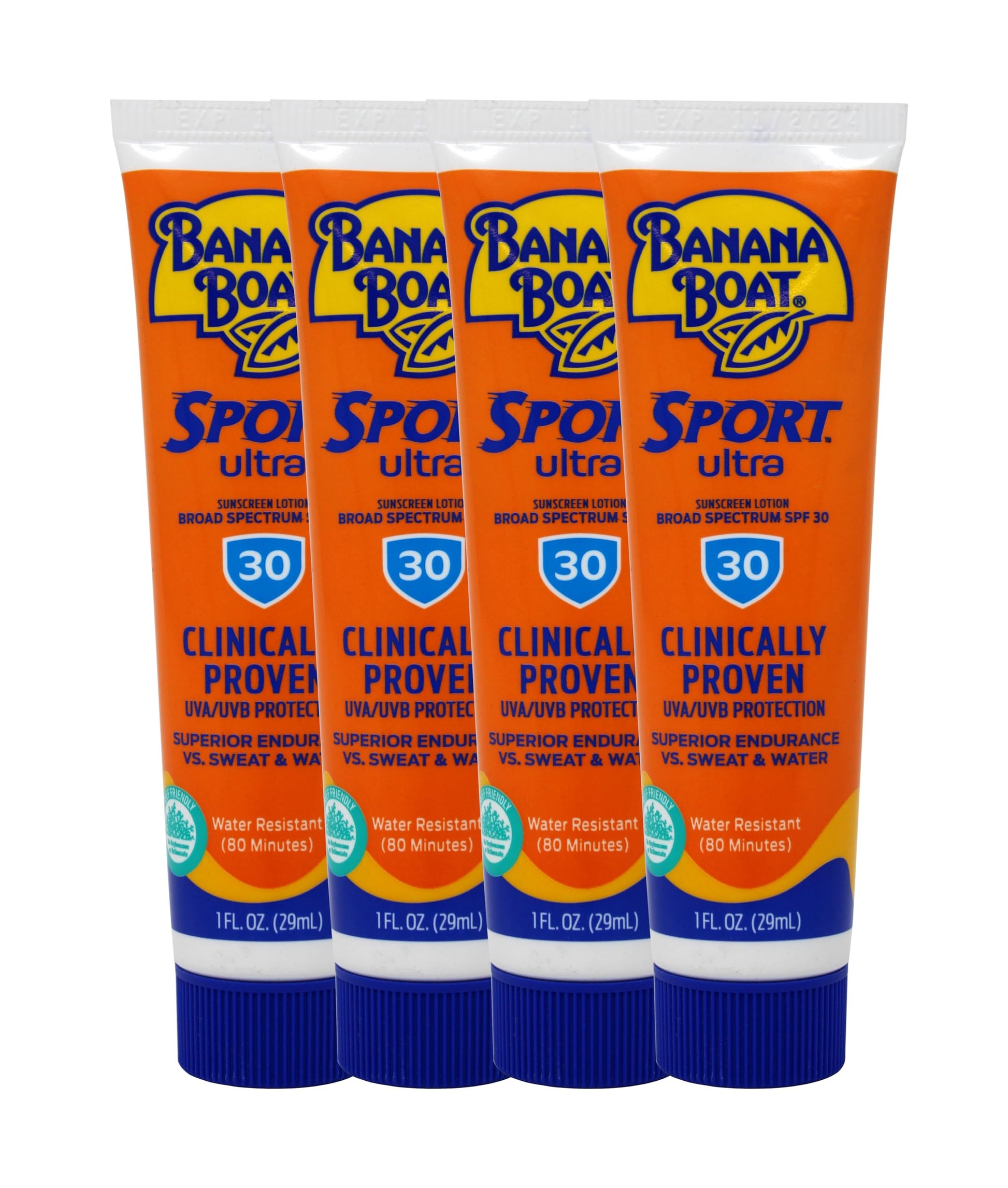 Banana Boat Sport Performance Sunscreen Lotion, SPF 30 1 oz (29 g) (Pack of 4)