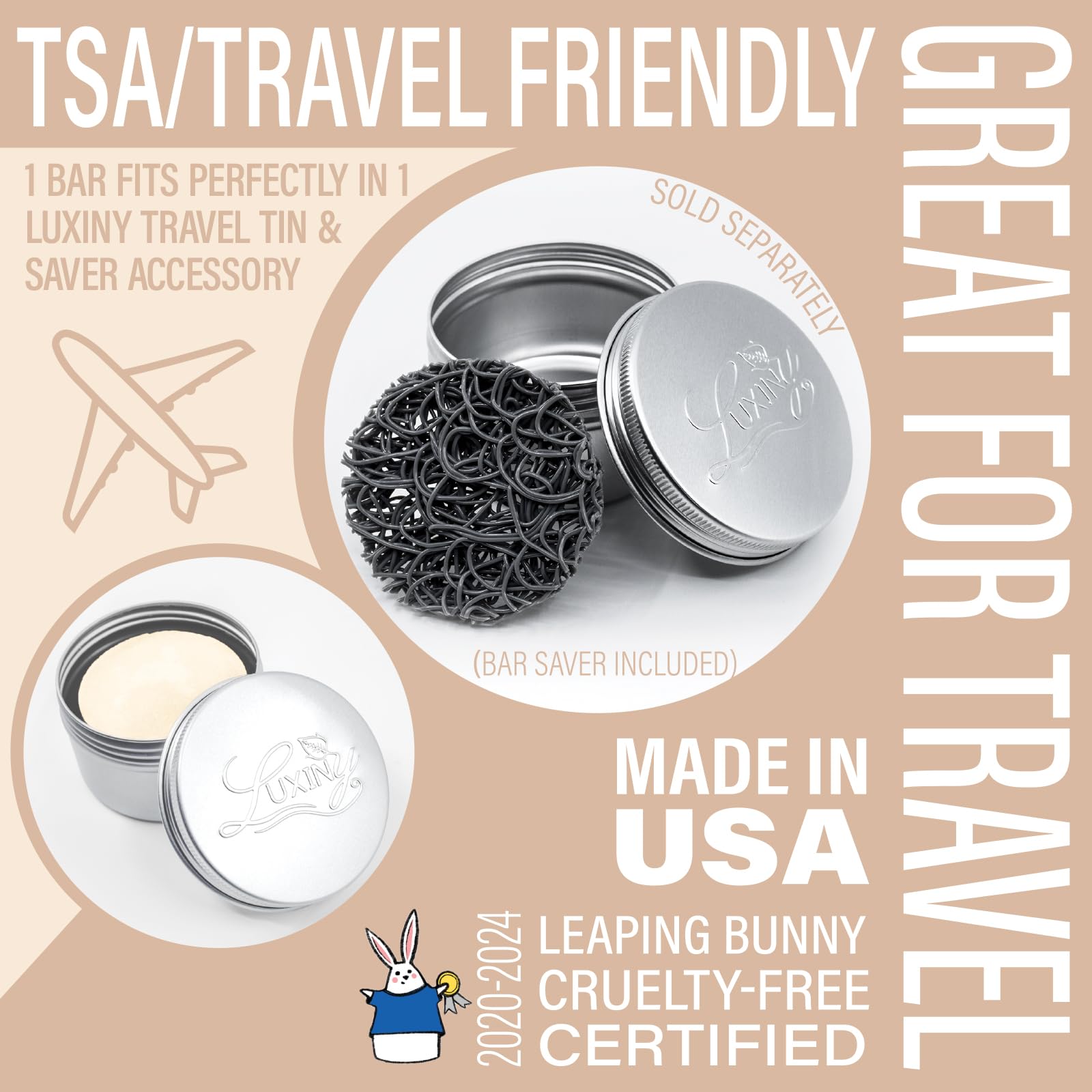 - TSA/TRAVEL FRIENDLY. Because Luxiny's shampoo and conditioner bars are solid, they can easily fit into your overnight bag alongside your other travel-sized toiletries. These leak-free solid shampoo and conditioner bars are light enough to carry in your backpack while hiking or camping and be tossed into your beach bag or purse for an after-swim shower.