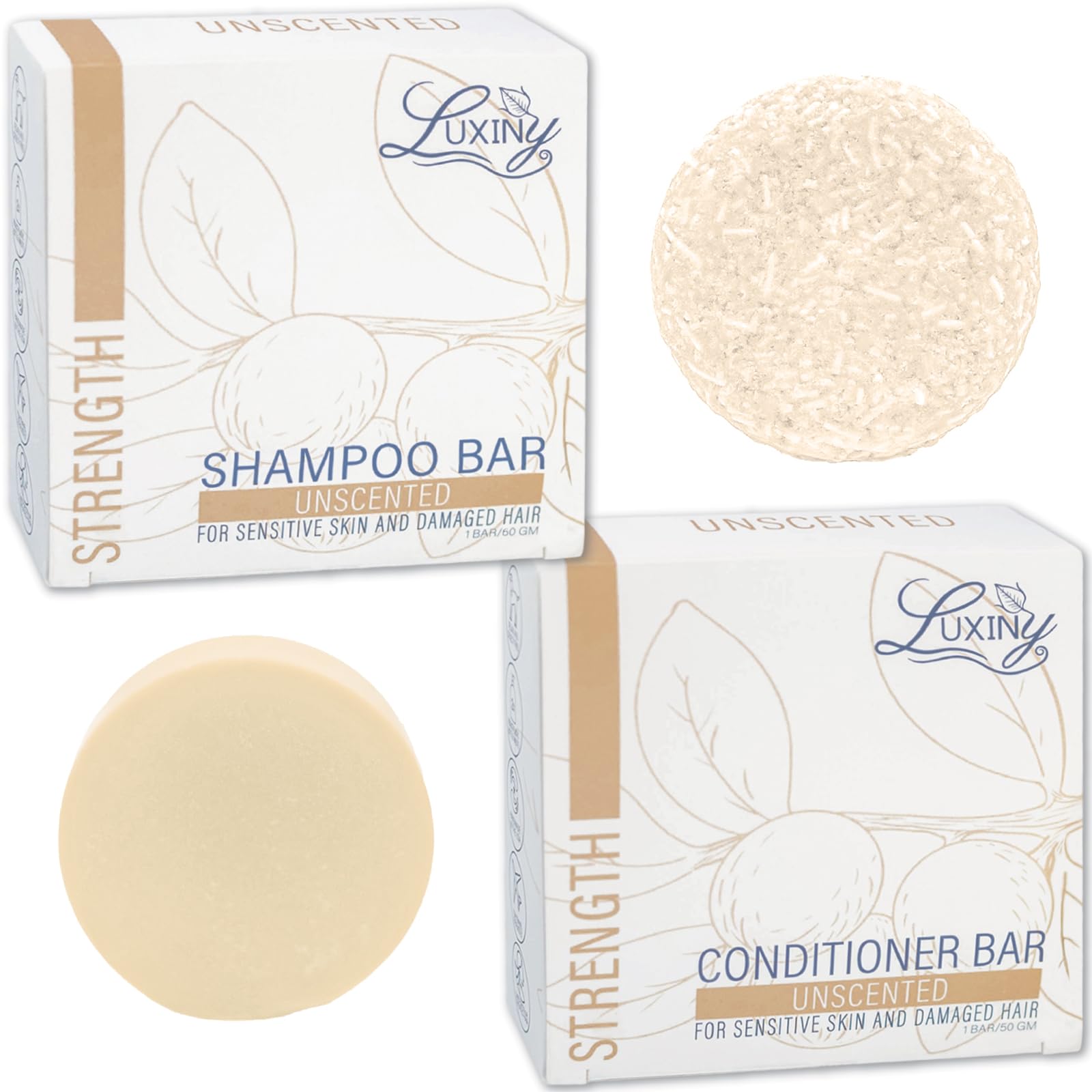 Bar Shampoo and Conditioner by Luxiny - Sulfate Free, Unscented Set With 1 Shampoo Bar (60g) & 1 Deep Conditioner Bar (50g), Made in USA (Fragrance Free)