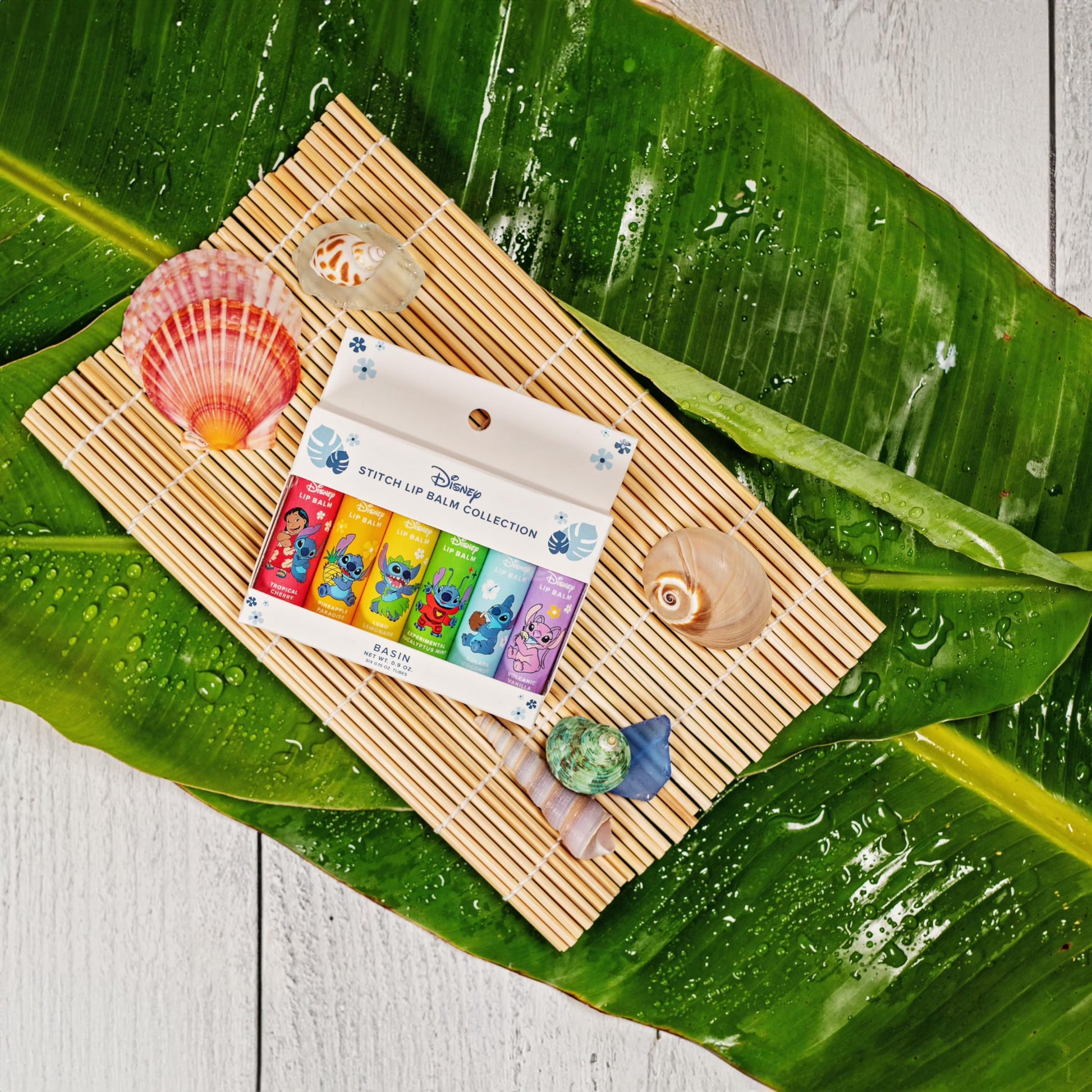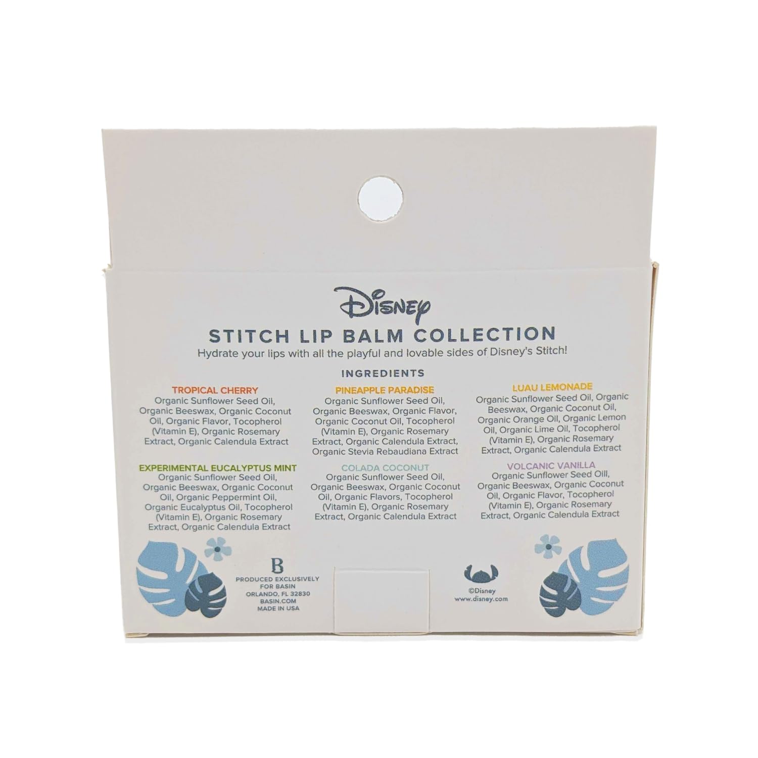 Basin Disney Stitch Lip Balm Collection | 6 Pack Tropical Flavors (Pineapple Paradise, Colada Coconut & More) | Organic Island-Inspired Gift Set, Official Disney, Made in USA
