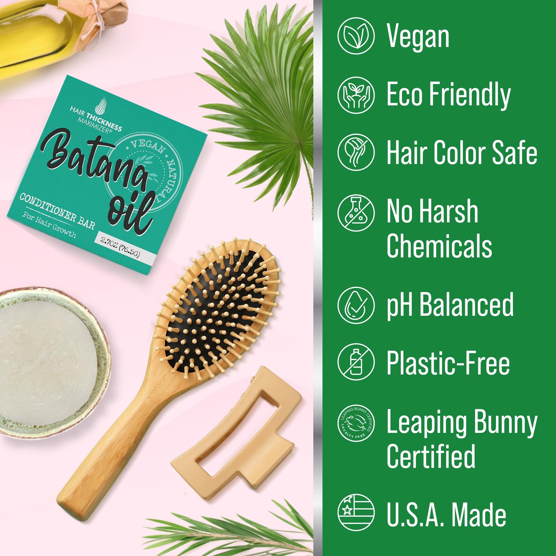 Batana Oil for Hair Growth Conditioner Bar. Eco Friendly, Vegan, Color Safe, pH Balanced. Solid Conditioner Bar Equal To 3 Liquid Bottles. Zero Plastic, USA Made, Strengthening & Dry Hair Relief