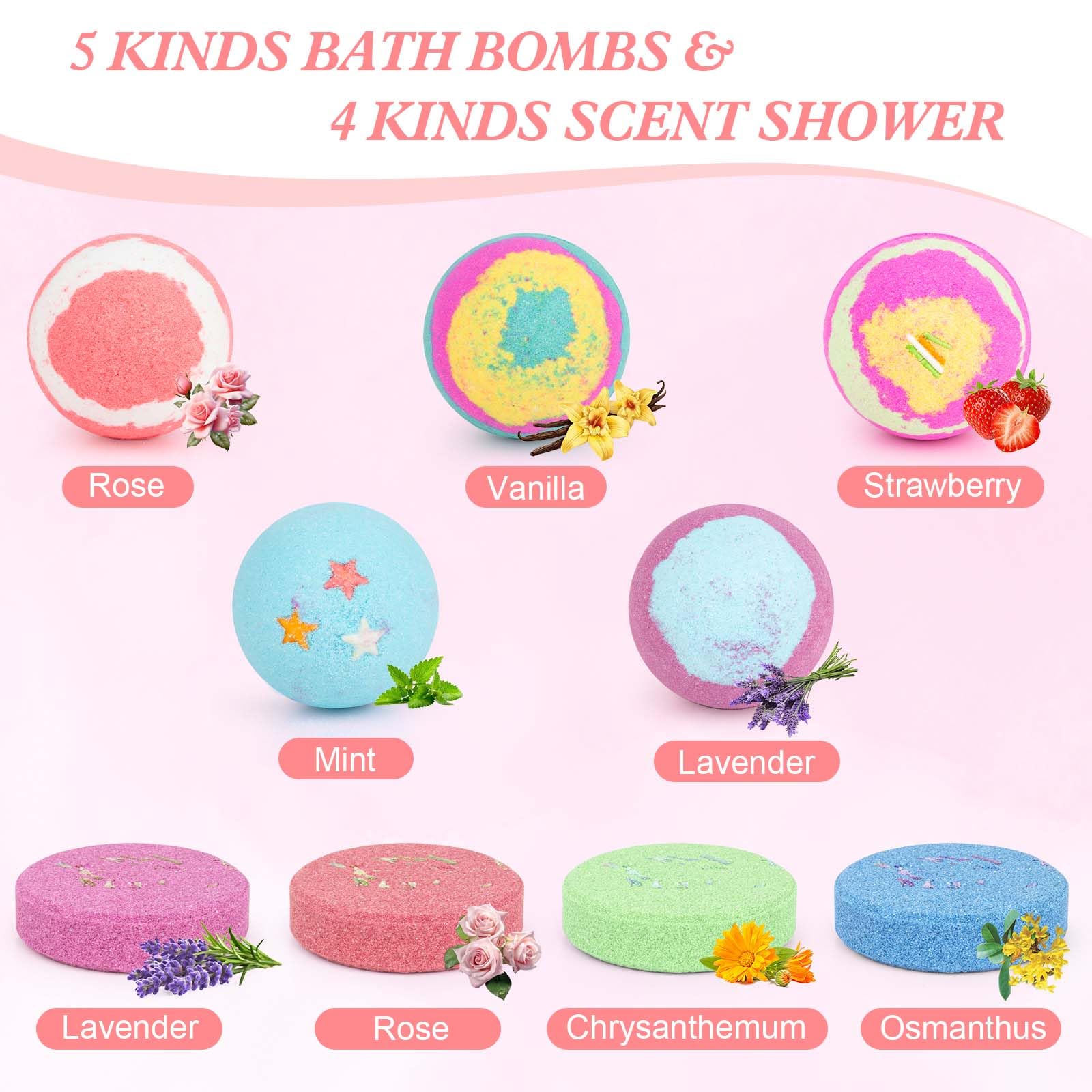 - đĽłăRelaxing Spa Gift BasketăThe relaxation gift set for women contains 6 packs of hand creams with different scents; 5 packs of bath bomb; 4 packs of shower steamers. The full set of self-care gift sets is very suitable for women to use during spa baths or skin care to relax their body and mind.