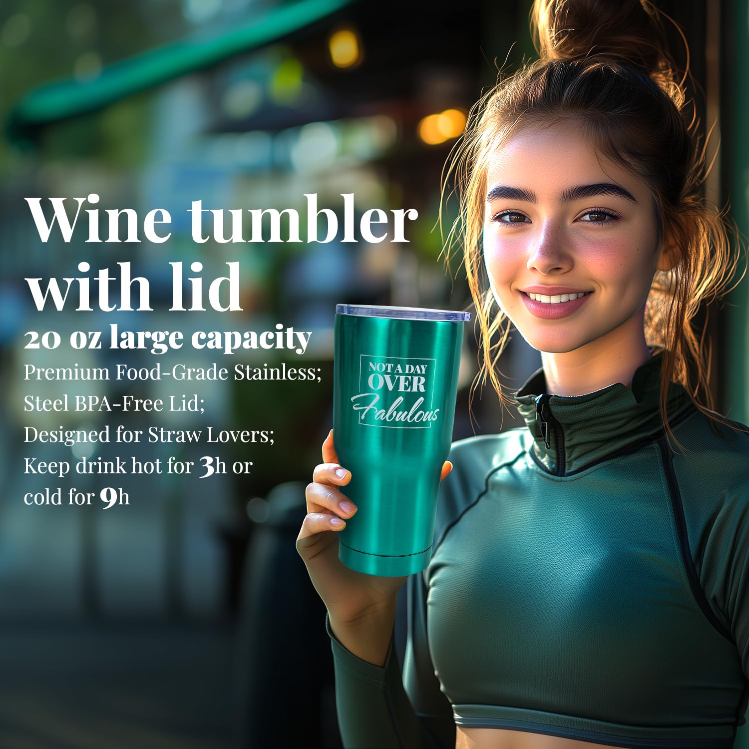 - Stainless Steel Tumbler with Straw:Tumbler with double-walled vacuum insulation, this sweat-free insulated tumbler with lid can preserve beverage temperature up to 24h for cold & 12h for hot, "Not A Day Over Fabulous", positive quote printing brings her smile & happy mood every day, express your love and care, making it an ideal birthday gifts for her relaxing gifts for women