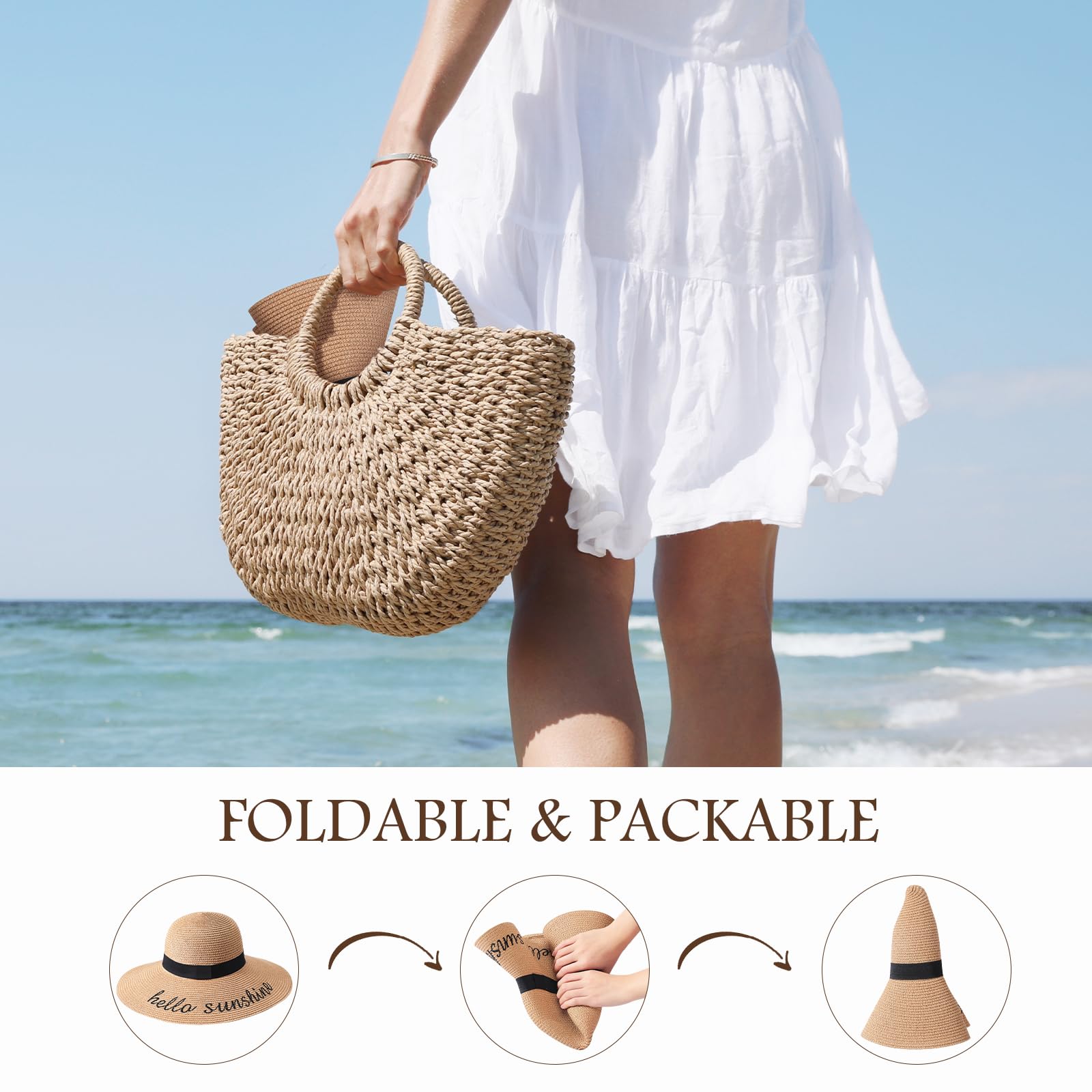 - Premium Straw Hat: Our sun hats for women is made of high-quality paper straw, super lightweight, breathable and flexible, perfect for summer, letting you stay cool and stylish under the sun. And the summer packable hat is easy to reshape as well after foldable.