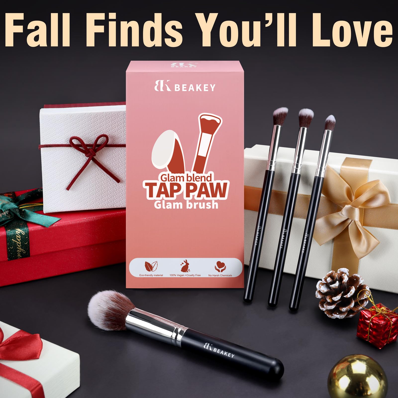 BEAKEY Makeup Brushes Set, Professional Foundation Eyeshadow Concealer Blush Powder Bronzer Applicator, 2 Blender Sponge with Beauty Paper Case