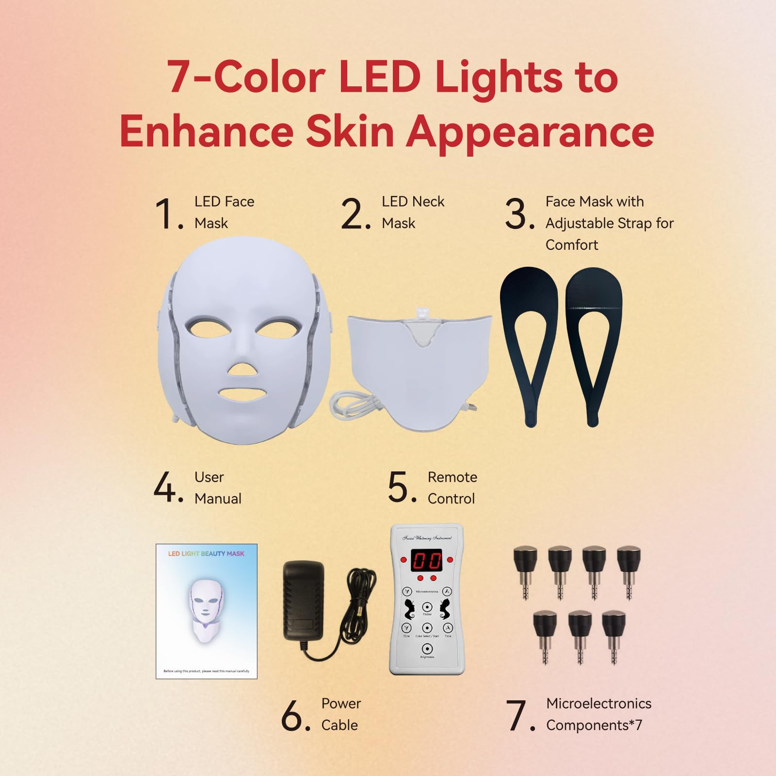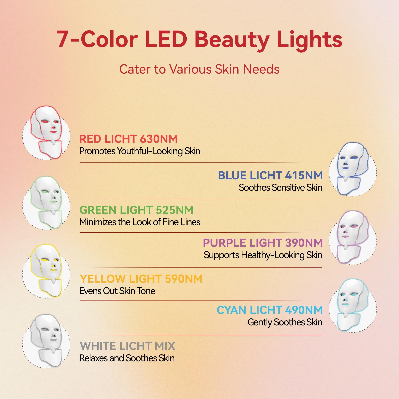 - 【Seven Color LED Light Therapy Mask】: Supports skin’s natural glow and radiance with seven different light colors, perfect for reducing the appearance of fine lines and brightening the complexion. Light therapy mask is suitable for comprehensive face and neck care.