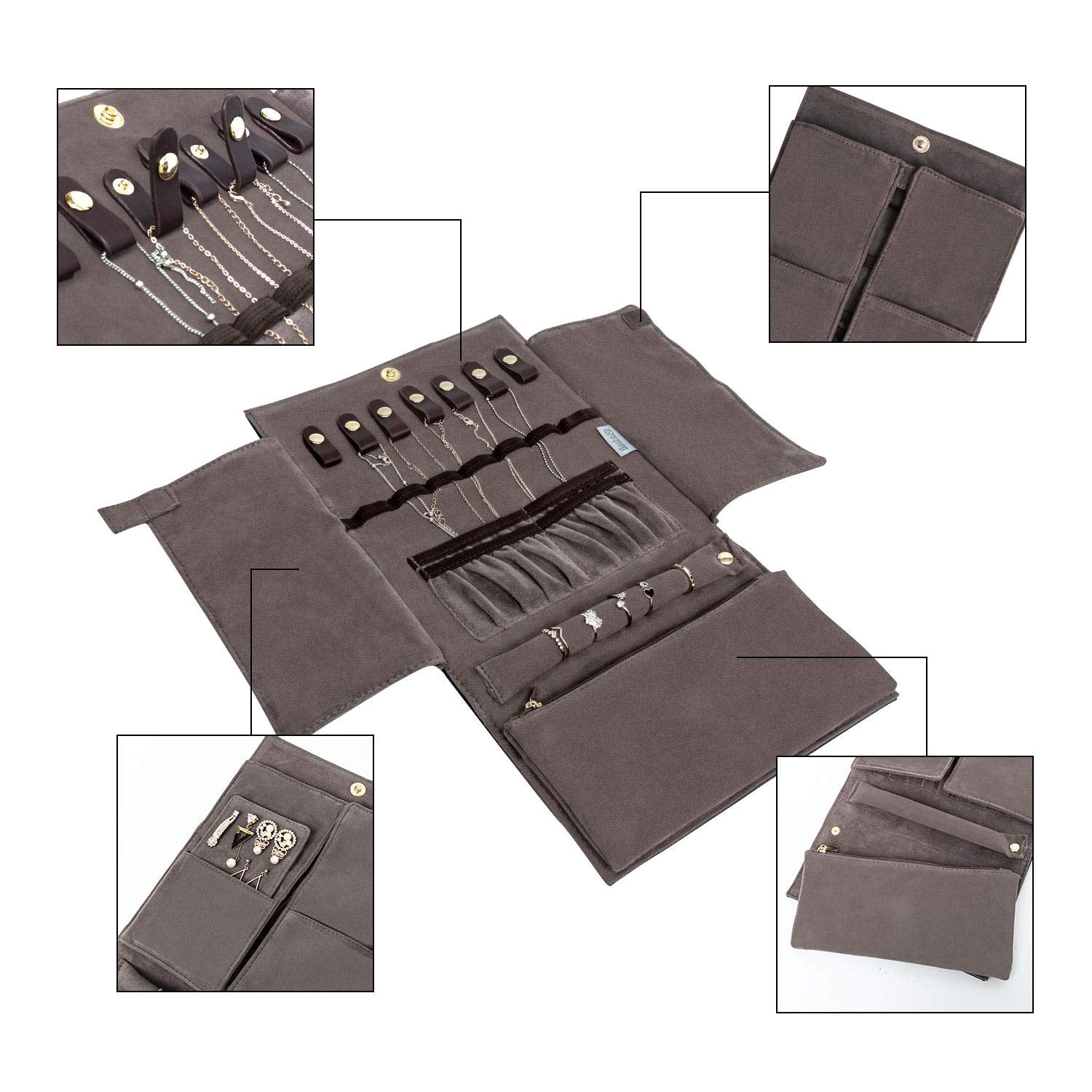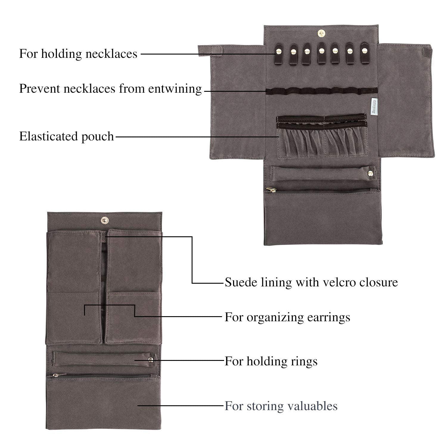 - Premium Material - Constructed by soft leather and quality suede, Becko US jewelry roll takes on a graceful look and allows you to organize your jewelry neatly. A good helping hand to protect your valuable belongings while on the go.