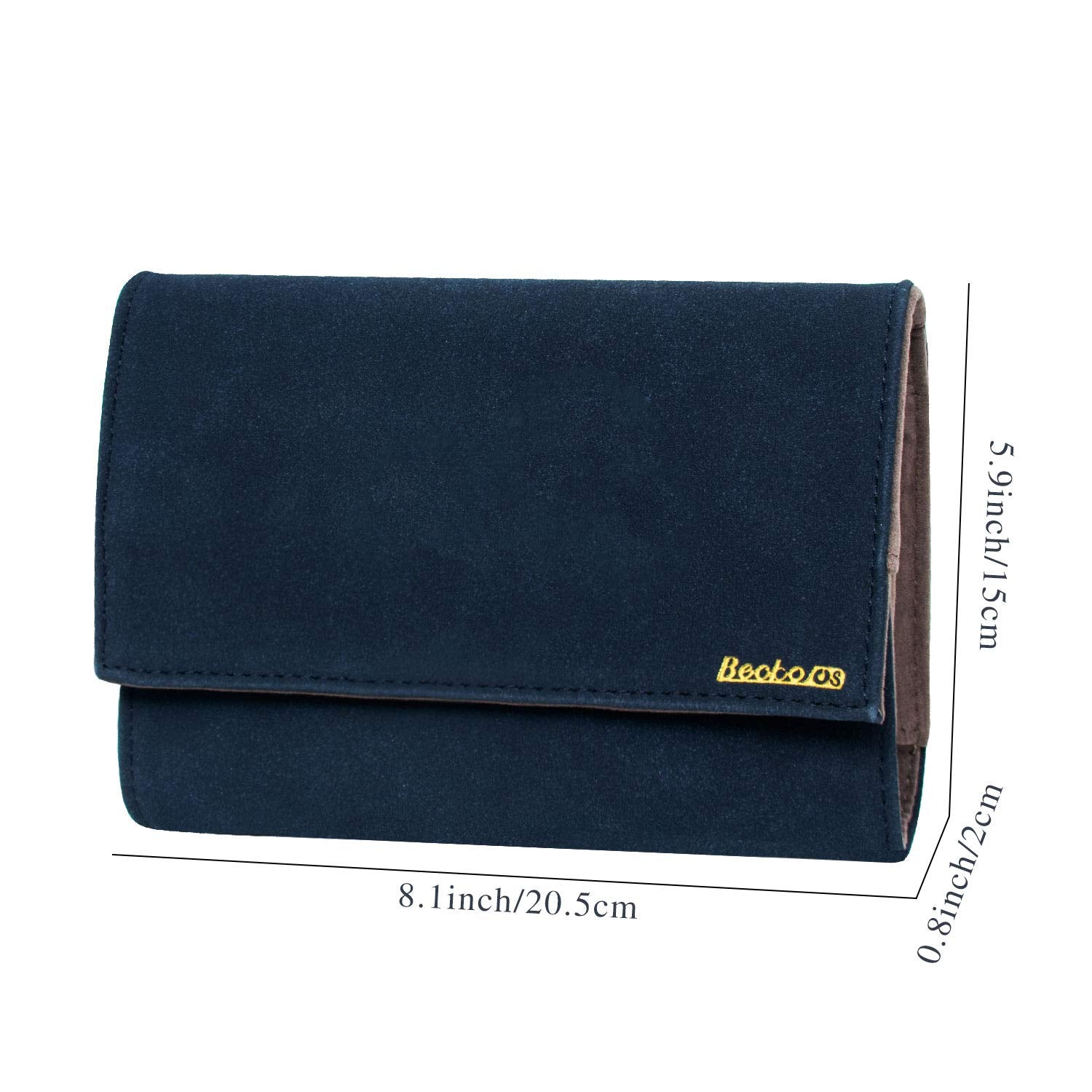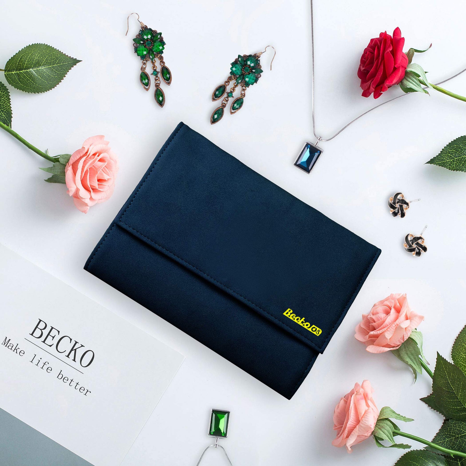 Becko US Jewelry Organizer Roll Travel Jewel Bag case for Multiple Necklaces, Rings, Bracelets, Supple Leather & Suede, Large Capacity Without Crease, Lightweight, Portable & Practical (Dark Blue)