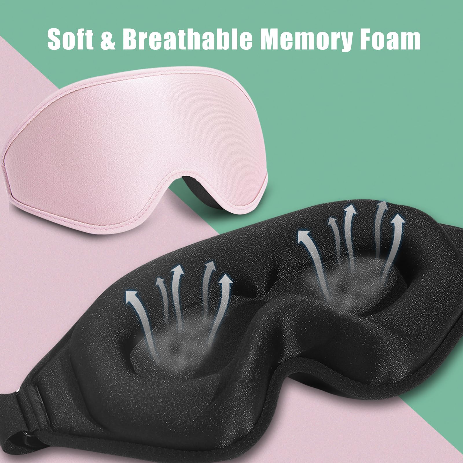 - REAL 100% Light Blocking: Our upgraded 3D sleep mask features a flexible nose padding design, deeper & wider eye sockets, which fits perfectly for all face shapes & blocks light completely, bringing you an uninterrupted sleep in a Natural & Healthy Way. Note: our eye mask is 100% light blocking for almost everyone, if it is not 100% light blocking, adjust strap & nose area to reach complete blackout.