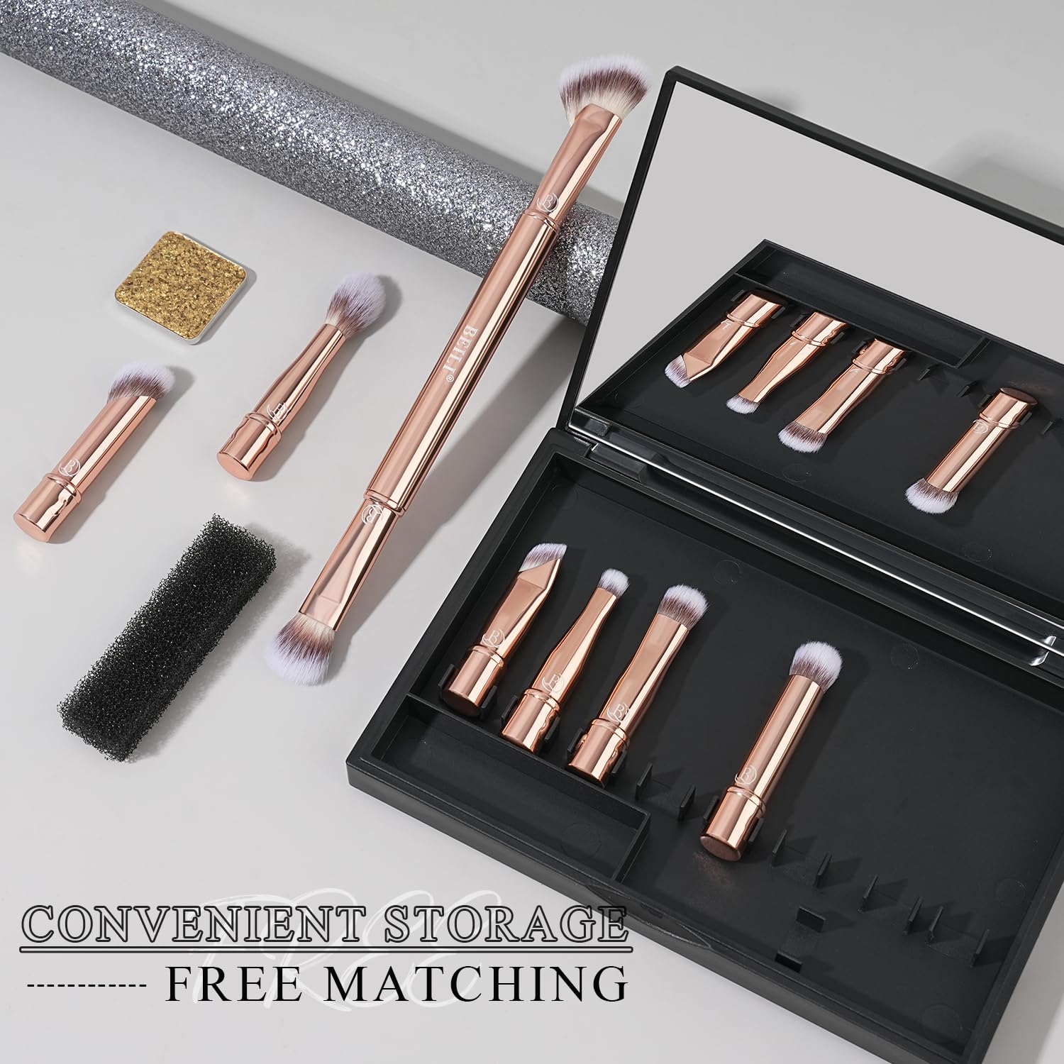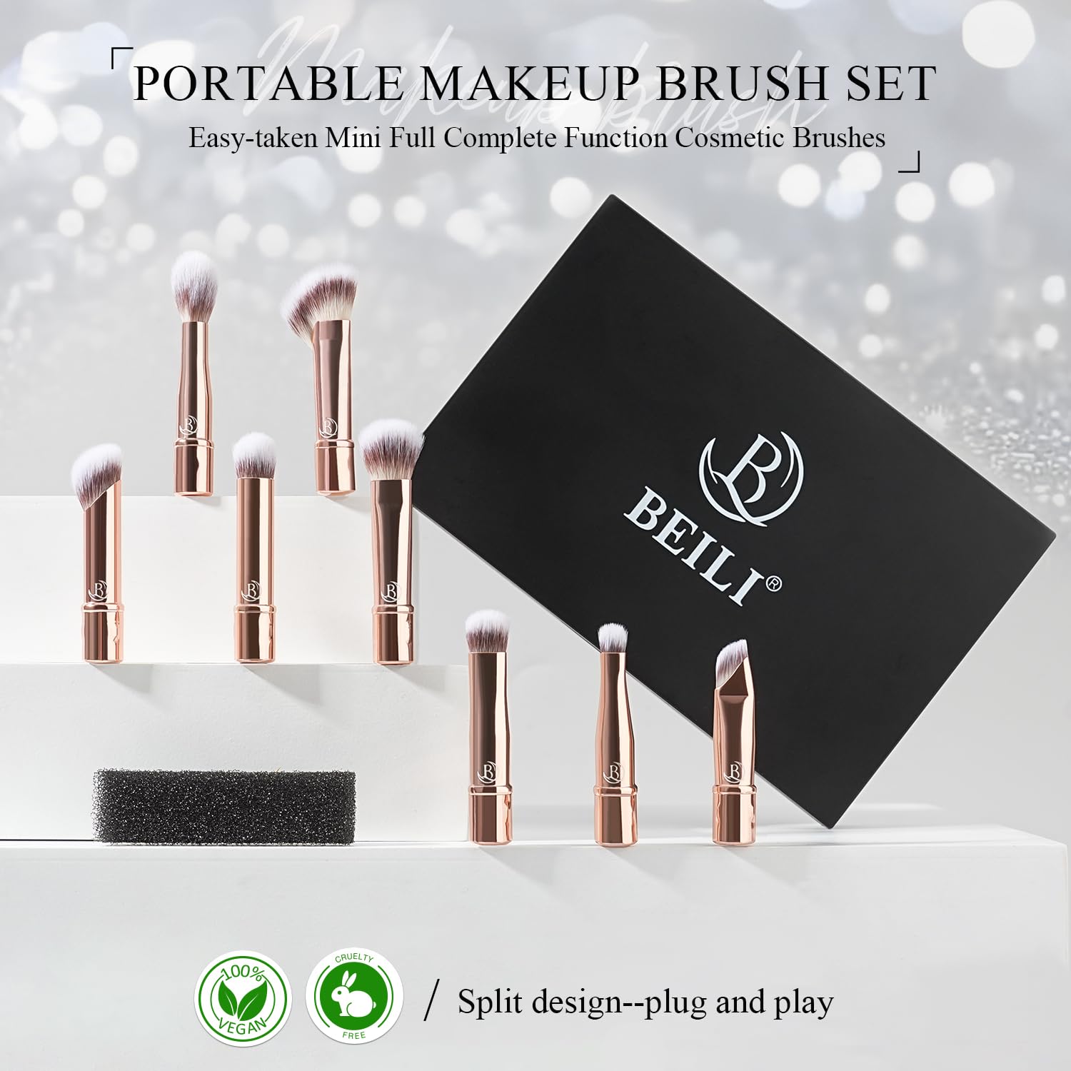 - 8-in-4 Double Sided Removable Brushes Set: BEILI professional-grade versatile brush set includes 8 unique brush heads, offering endless options for creating any look with ease. Perfect for both experts and beginners,it ensures effortless application and allows for creative exploration.Each brush is designed to cater to your style, making it an ideal gift and a compact,travel-friendly solution for flawless makeup on the go.
