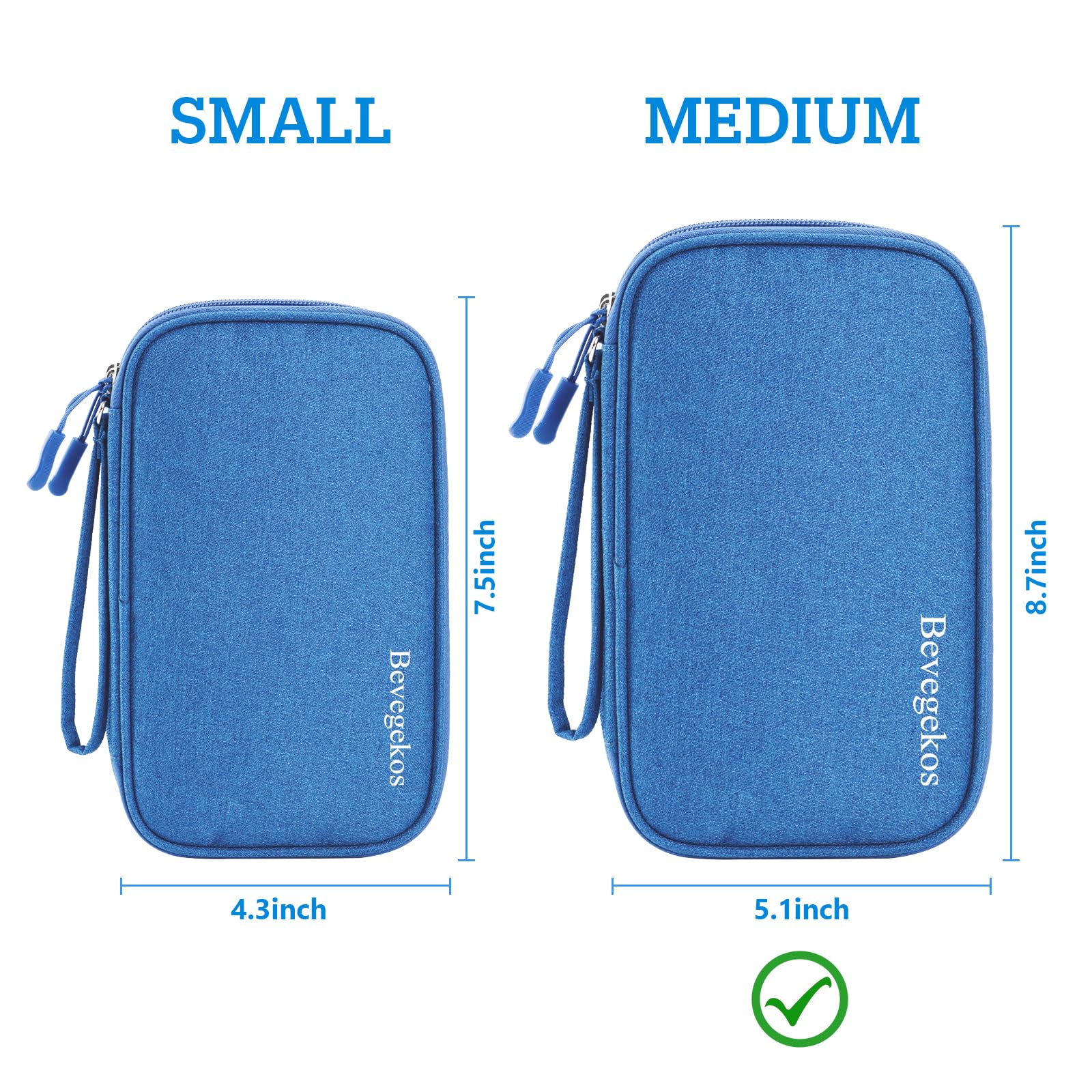 Bevegekos Electronics Organizer Case Travel Accessories Cords Cables Pouch Power Bank Bag (Medium, Azure Blue)