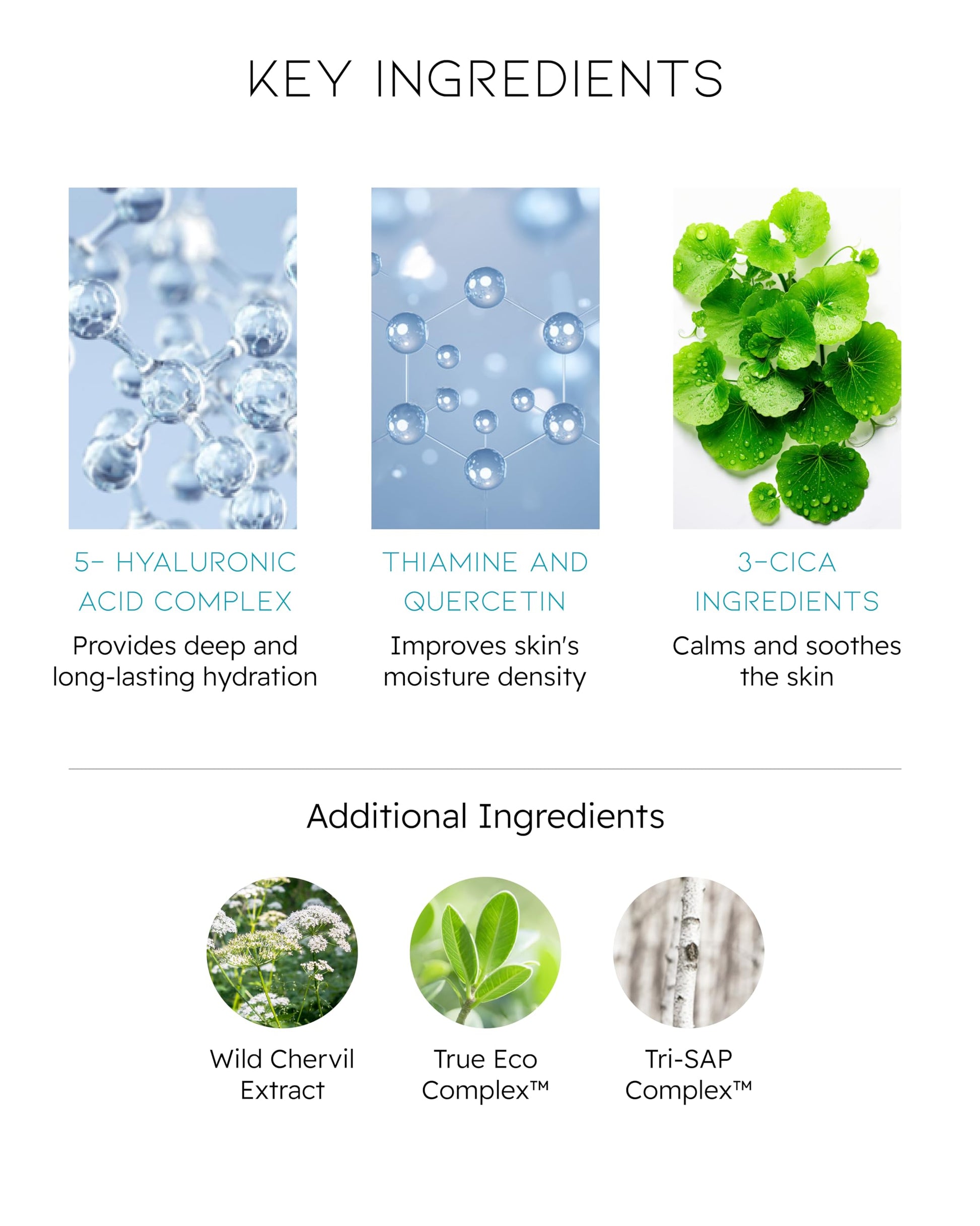 - BOOST SKIN MOISTURE - Infused with a potent 5-Hyaluronic Acid Complex and Thiamine and Quercetin-containing formula, this ampoule significantly boosts skin moisture density by 76%, ensuring long-lasting hydration. Additionally, the presence of 3-Cica ingredients works to calm and alleviate skin discomfort.