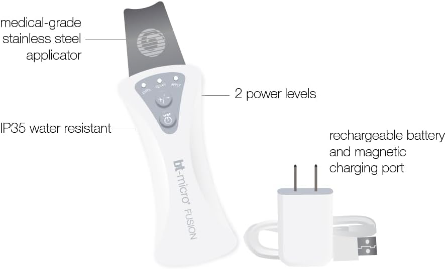 Bio-Therapeutic bt-Micro Fusion Ultrasonic Skin Exfoliation. Smooth Skin, Clear Congestion, Superior Blackhead Extraction, 3 Modes 2 Power Levels, Stainless Steel Applicator, Rechargeable