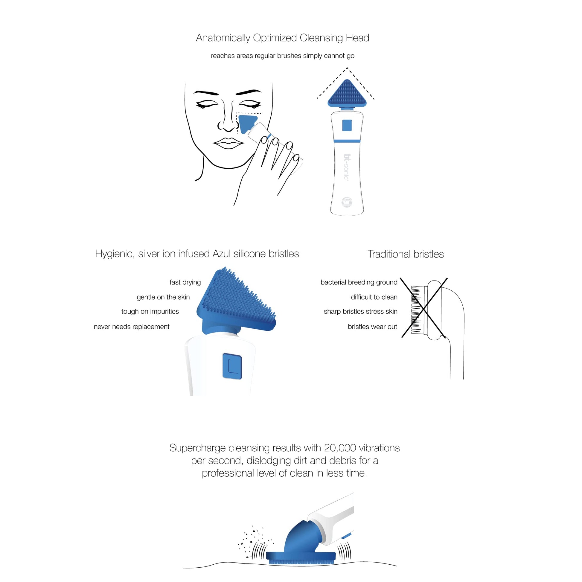 - ANATOMICALLY OPTIMIZED: Our precision engineered triangular cleansing head is designed to seamlessly adapt to every contour of your face. It effortlessly targets delicate areas under the eyes, around the nose and under the jawline, and effectively cleans pores and removes makeup without causing irritation to sensitive skin.