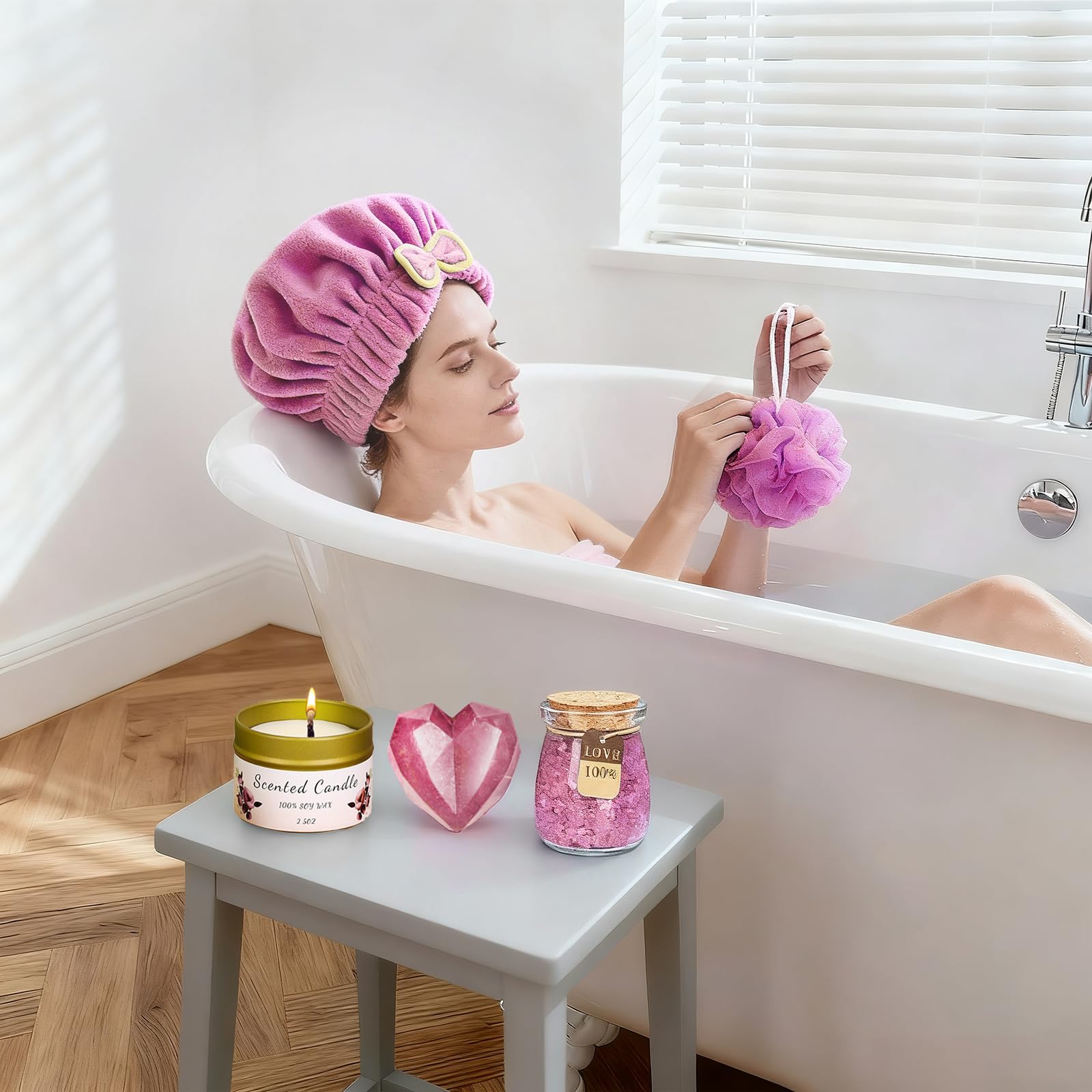 - 【Relaxing Spa Gifts for Her Birthday】Transform her special day into a luxurious retreat with this thoughtfully curated birthday gift set. Including bath salts, a heart-shaped handmade soap, spa headband, shower cap, bath loofah, and fuzzy socks, it offers a complete at-home spa experience. Combined with the custom DIY pop-up box, it becomes more than a gift—it’s a heartfelt happy birthday gifts basket for women that conveys both care and creativity.
