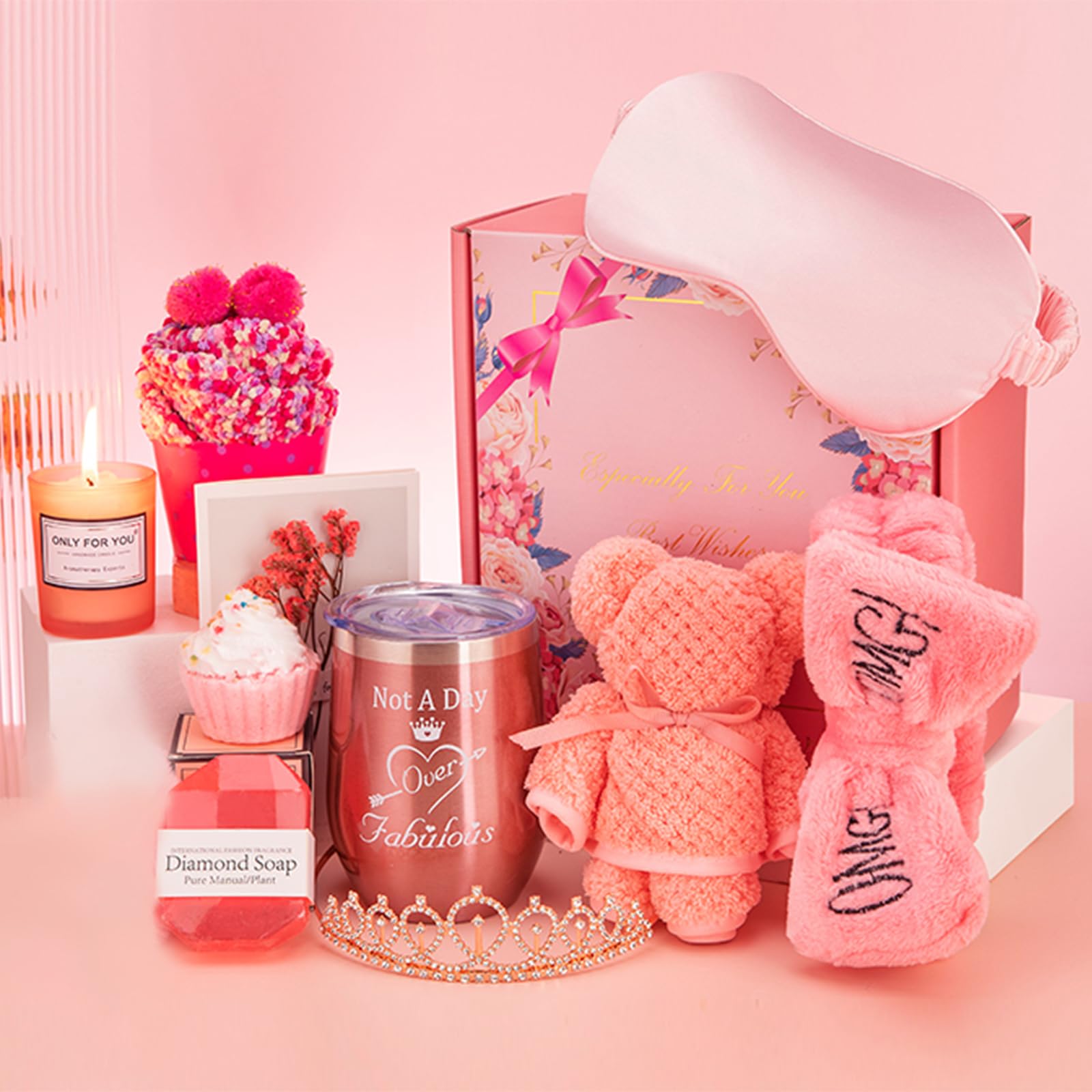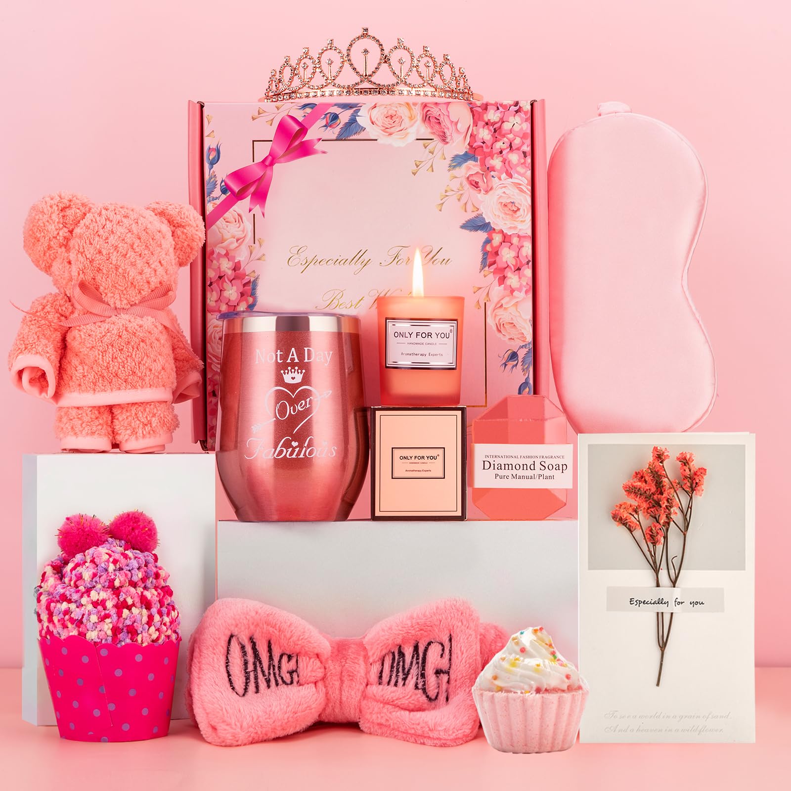 Birthday Gifts for Women,Happy Birthday Unique Female Gift Ideas for Girl Best Friend Pink Box Gift Basket for Women Gifts Set for Teenage Girl Sister Mom Relaxing Presents Set