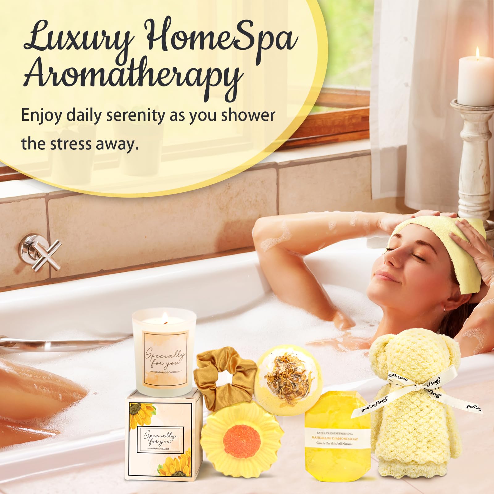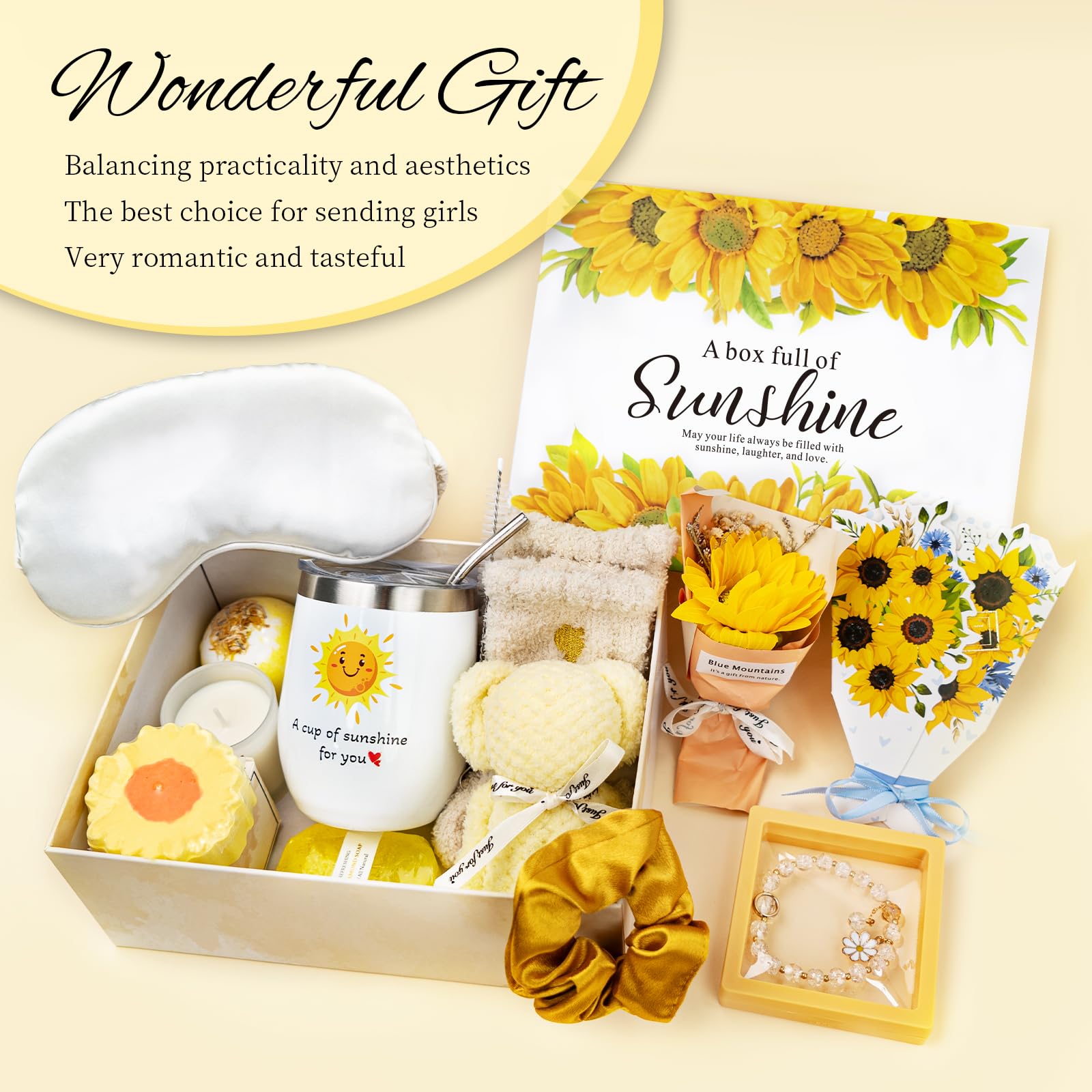 Birthday Gifts for Women, Sunflower Self-Care Package, Sending Sunshine Get Well Gifts for Women, Her, Sister, Mom, Best Friends, Unique Relaxation Spa Basket Perfect for Valentine's Mother's Day