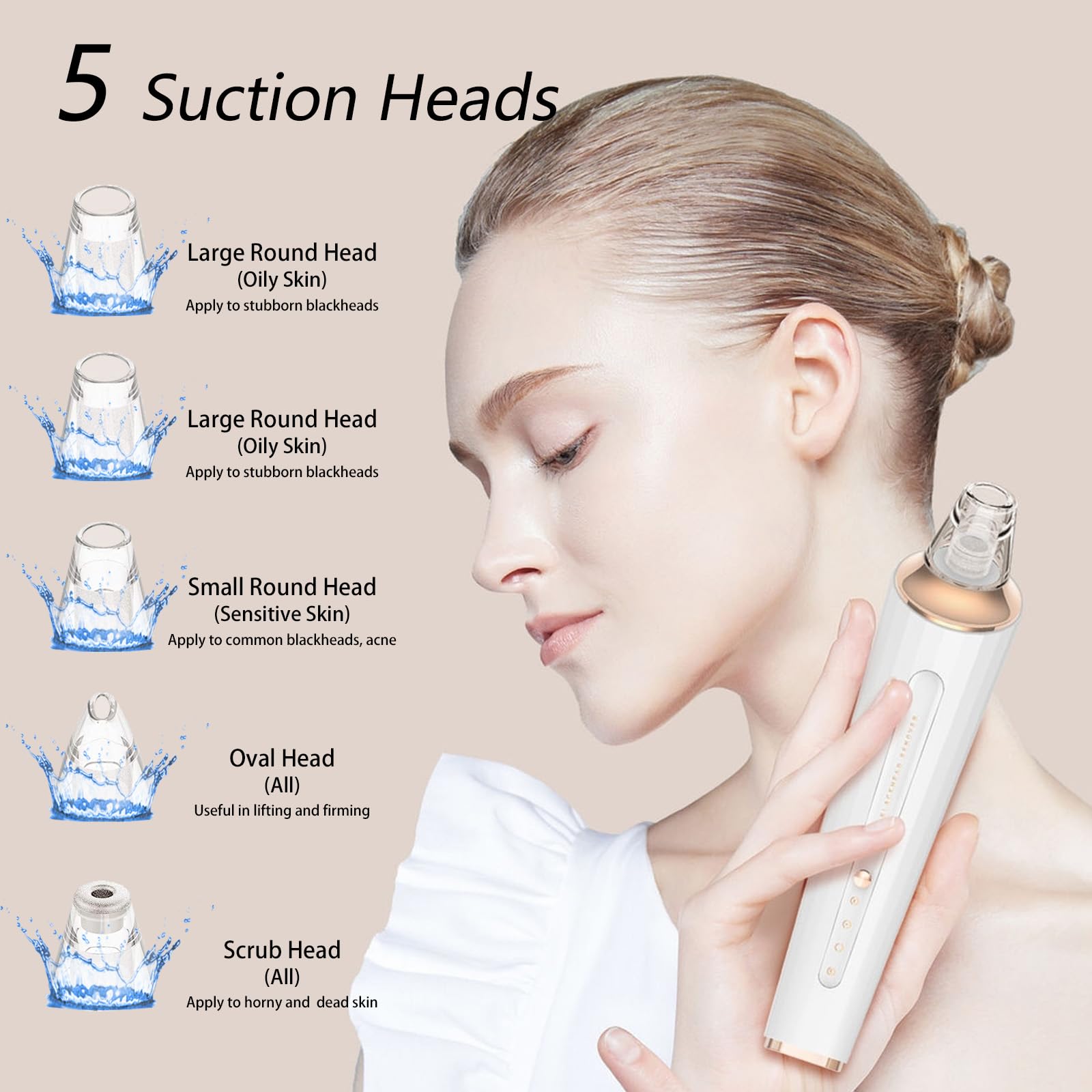 - ♕【Powerful Blackhead Vacuum Tech】The blackhead remover ultra-powerful suction level, Maximum to 60kp. Effectively cleans the oil, blackhead, grease and acne in the clogged pores. Also increase blood circulation & skin elasticity,clean skin,tighten skin,smooth you're fine lines.Help you recover from common facial skin problems.