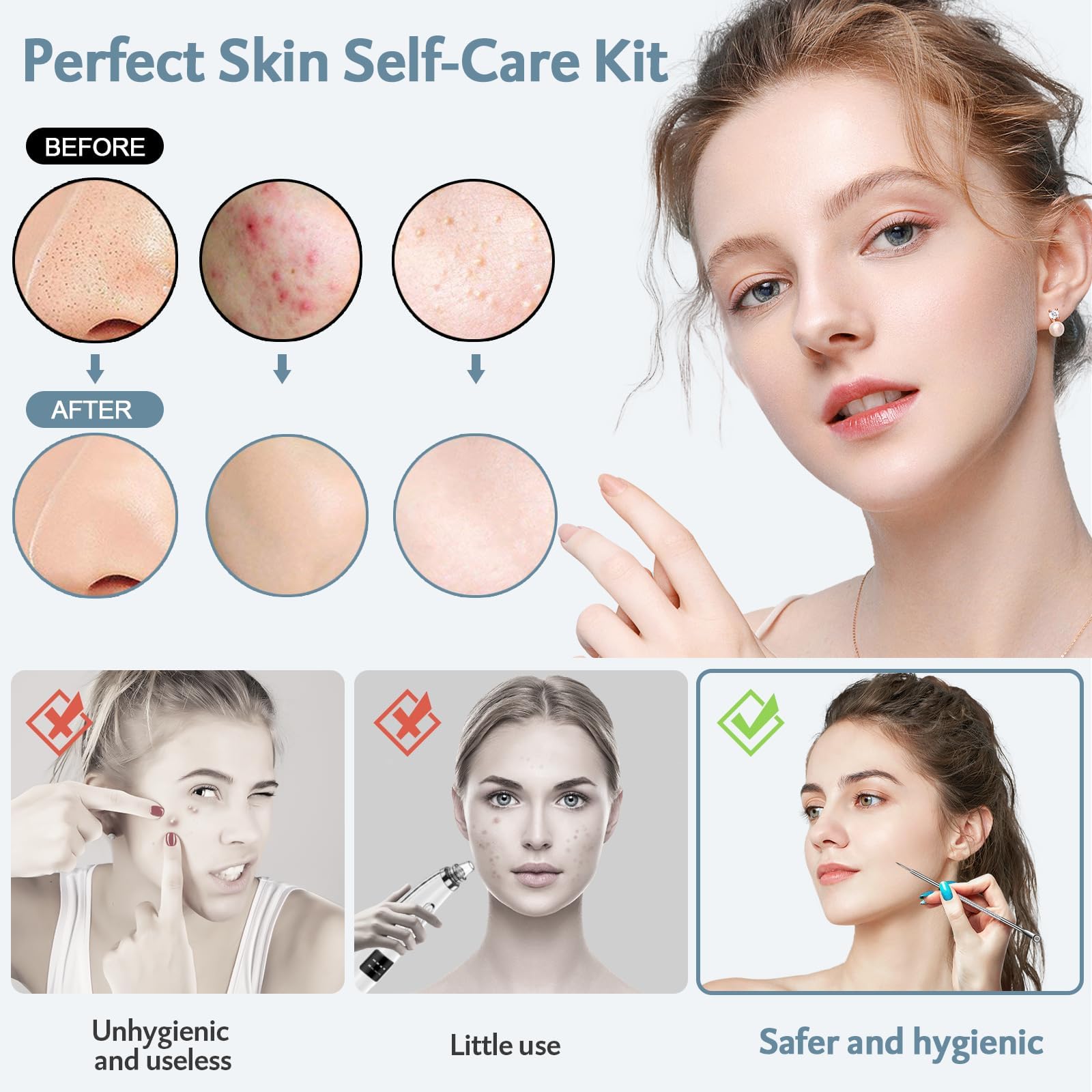 - 【Applicable Skin】: Our pimple extractor set is fit on all types of skin, like sensitive face, oily skin, dry skin, especially suitable for acne skin. Precaution: we suggest to use the black head extractions tool after the acne ripe enough, and please wipe all tools with rubbing alcohol before and after each use.