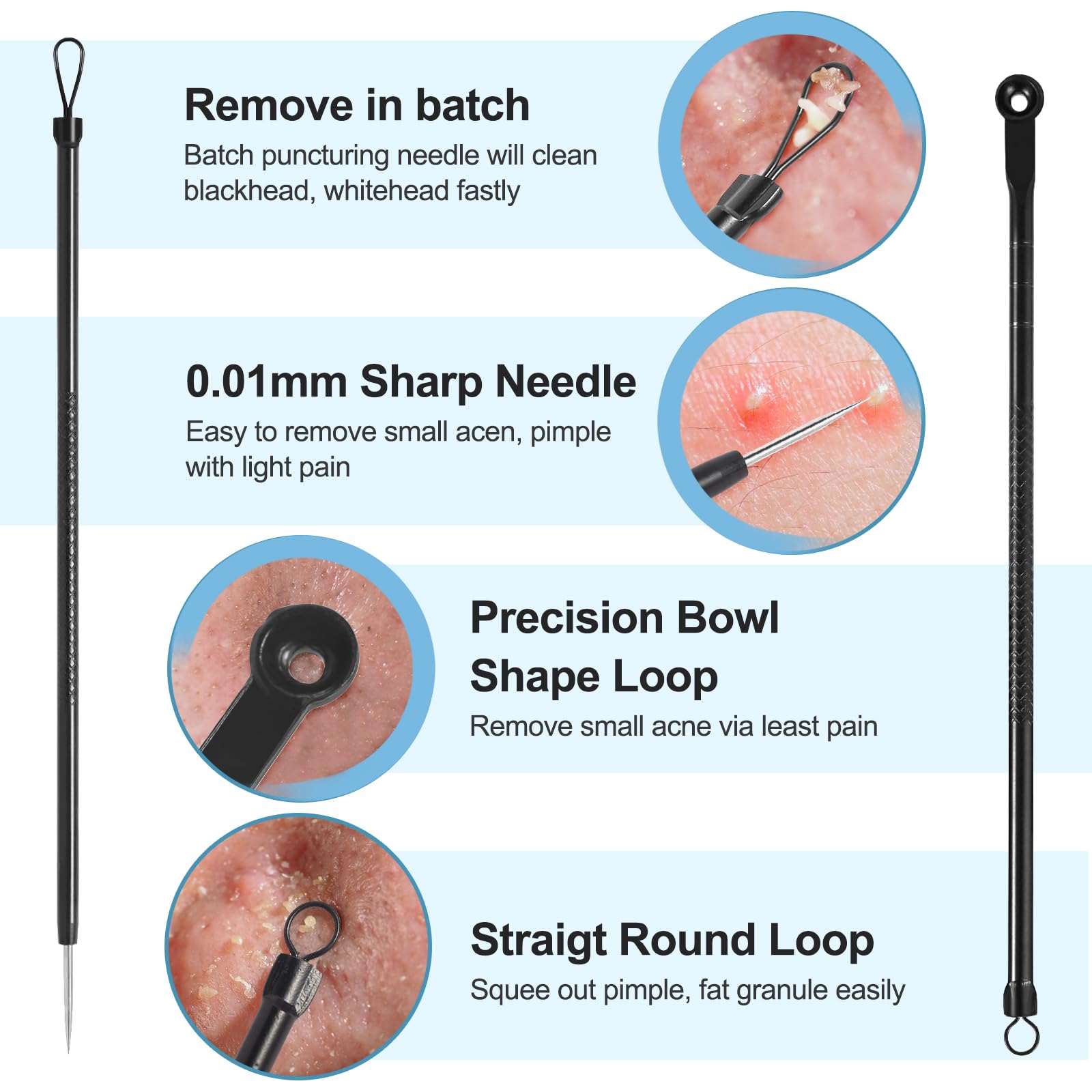 - Premium Material pimple extractor: sterilized and clean, without rust and safe to use and never worried if they would create harmful infections, perfect blackhead extractor for acne, blemishes, blackheads, pimples, acnes, zits, fat grains