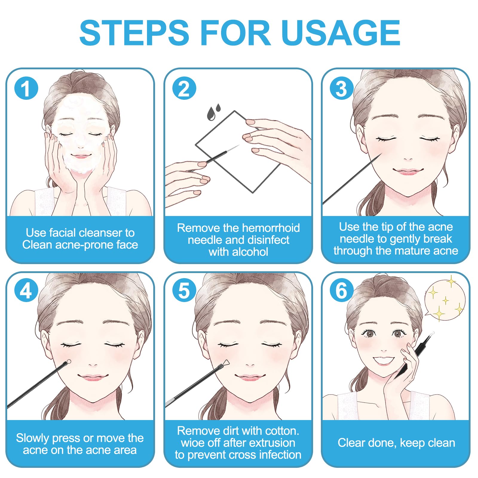 - Precautions Before Using: please wipe all zit popping tool kit with rubbing alcohol before and after each use including the comedone extractor, your hands, and pimple area