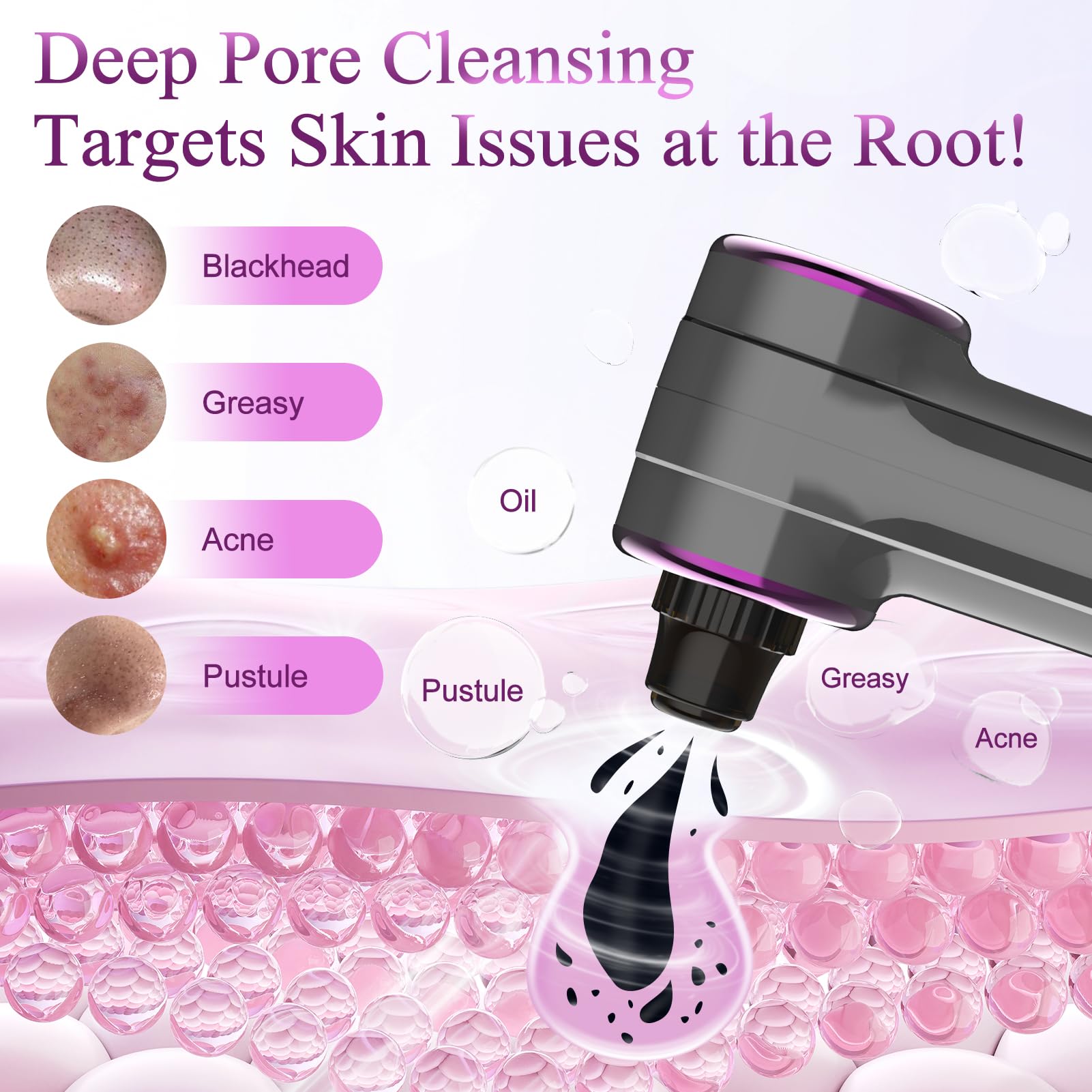 - 5 Suction Heads for All Areas – Includes 5 interchangeable heads for different facial areas and skin needs, with suction strength varying by head size.