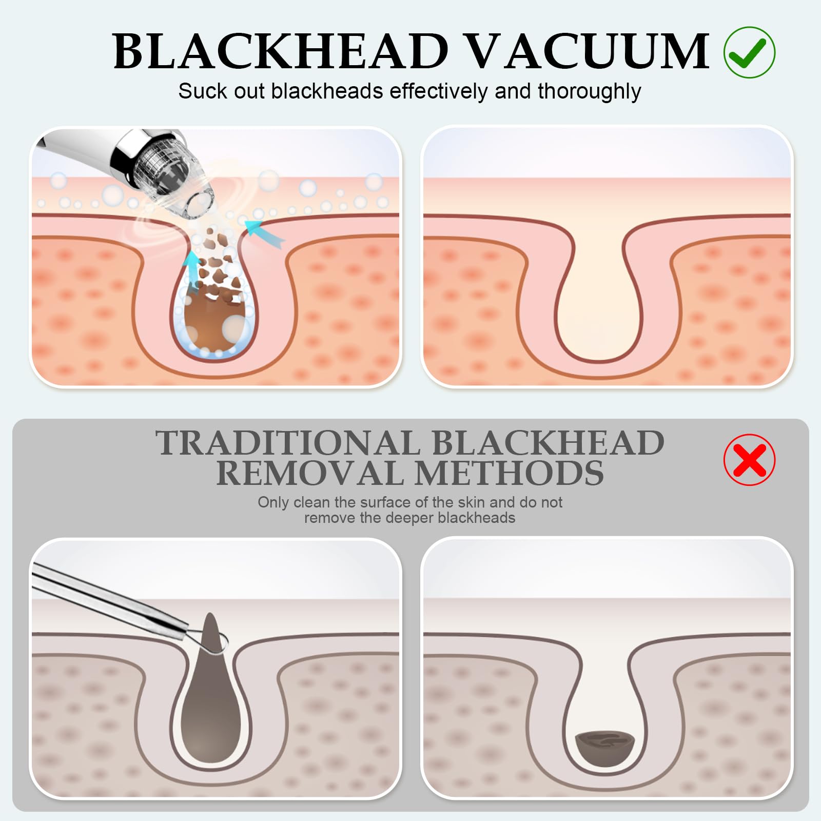 - Effective Blackhead & Impurity Remover - Our advanced pore vacuum cleaner delivers a deep yet gentle facial cleanse, effectively suctioning away blackheads, whiteheads, excess oil, acne-causing debris, and makeup residue. Regular use reveals smoother, clearer, and more refined skin with minimized pores.