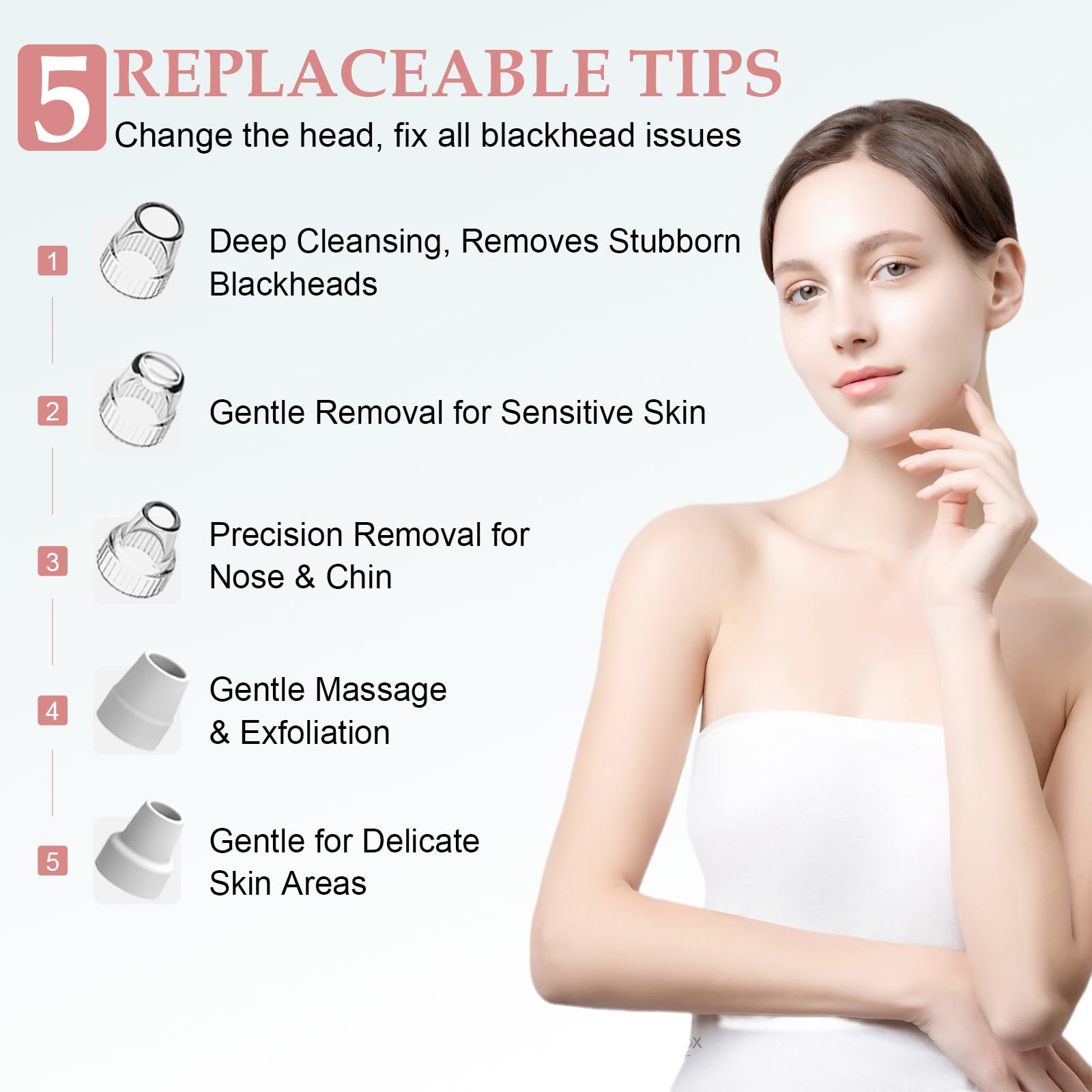 - Complete 5-in-1 Blackhead Remover Kit - Everything you need in one box: the main pore suction device, 5 hygienic stainless steel attachment heads, and a handy storage case. A perfect skincare gift for both women and men—whether for personal use or sharing with family and friends.