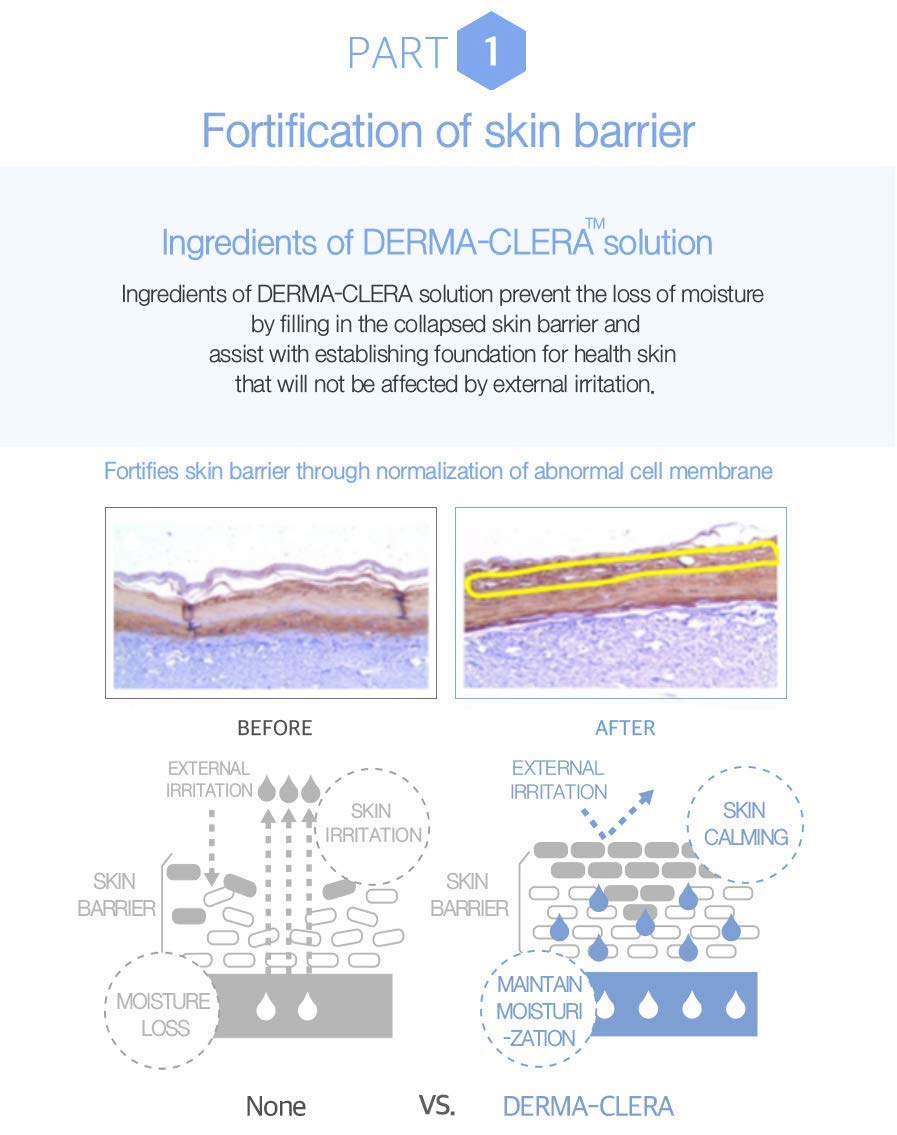 - đŚ DERMA-CLERA helps fortify the skin barrier, calms the skin, maintains moisture level, alleviates and calms irritation, and helps skin regenerate.