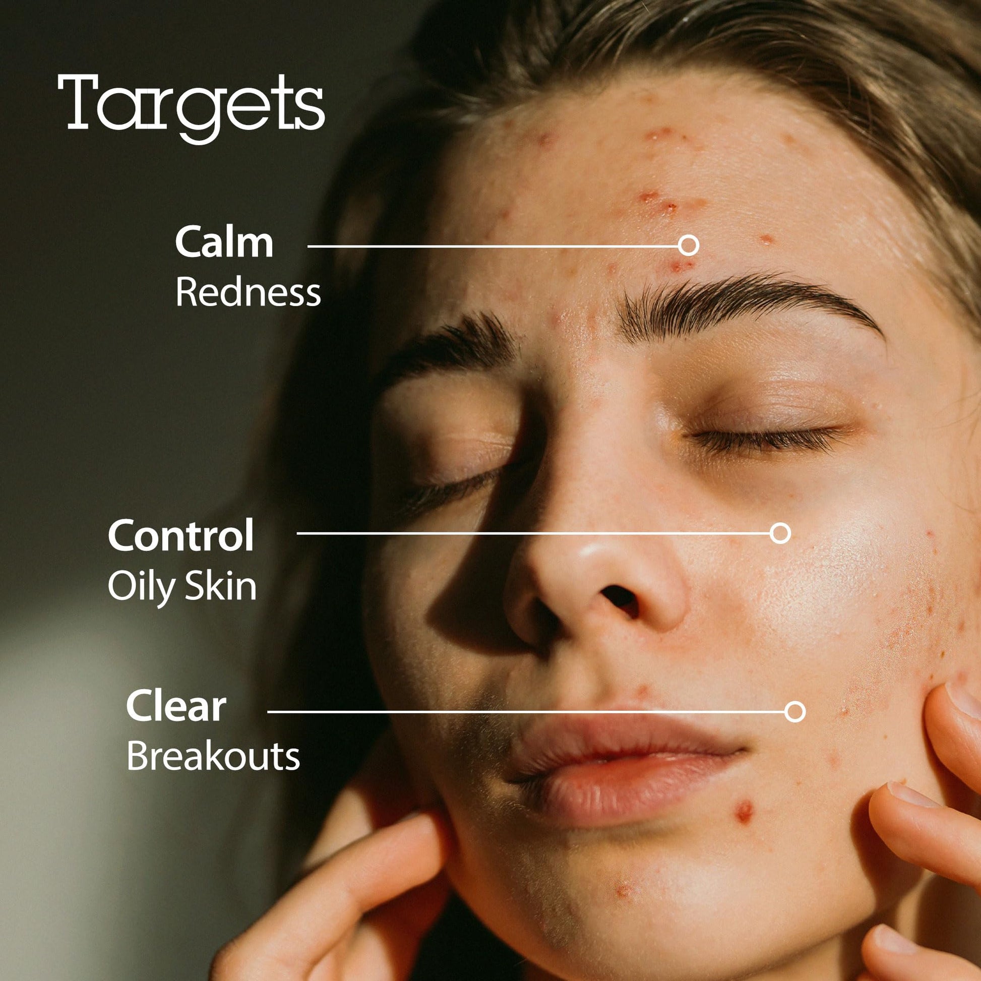 - Soothing Redness Relief – The clear essence is ideal for oily skin as it contains Erythritol which is glucose produced by yeast fermentation that provides a cooling sensation to rosacea and heated skin without causing any iritation. The purifying components of the 6 leaves assist with sebum production and acne control.