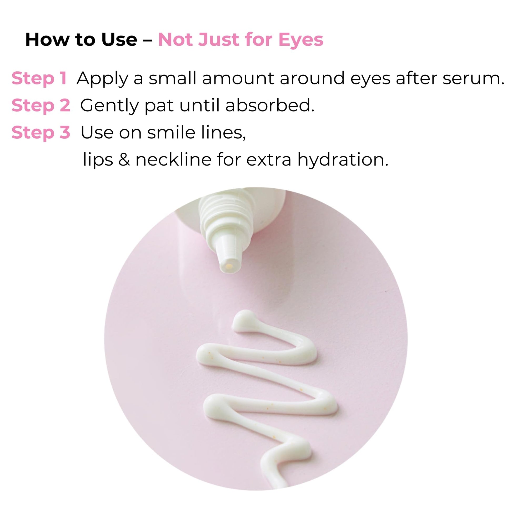 - [VERSATILE USE – NOT JUST FOR EYES] Can also be applied to the neckline, lips, and smile lines to target wrinkles & dryness.
