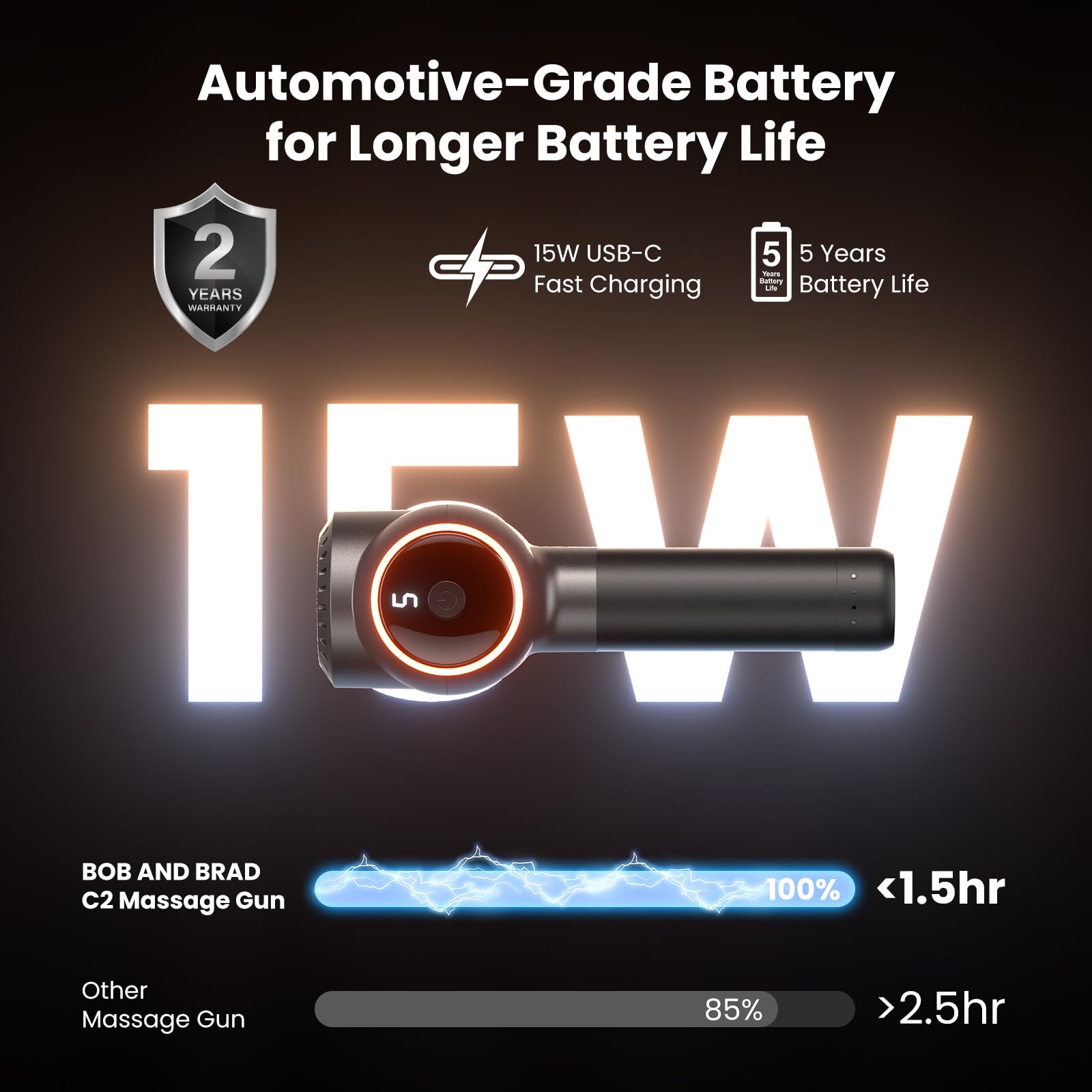 - Uniquely Elegant: Bob and Brad C2 Massage Gun is crafted from premium ABS material, not cheap plastic or stainless steel, with a silicone grip added to minimize hand vibration, conforming to ergonomic design. Paired with the latest brushless motor and automotive-grade battery, it ensures stronger, safer power output. These features make it the ultimate choice for gifting.