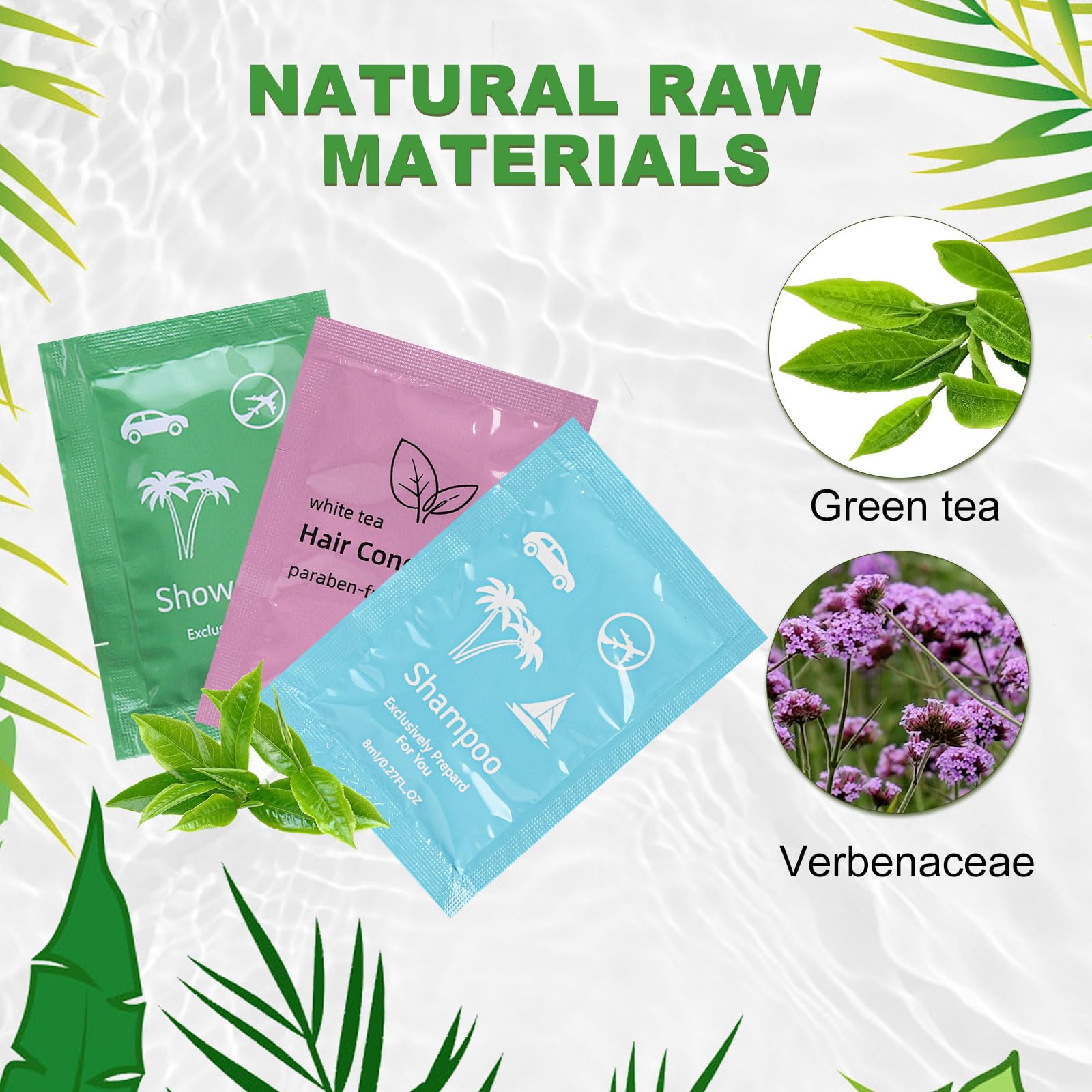 - 2.Travel Size Packets/ toiletries : 0.28fl oz of Travel Size Body Wash and Shampoo Bulk,which meets airport regulations. It can be carried with you in your backpack or checked in luggage whether it's business trips, trips, or outdoor activities. No need to worry about liquid leakage or occupying too much space.