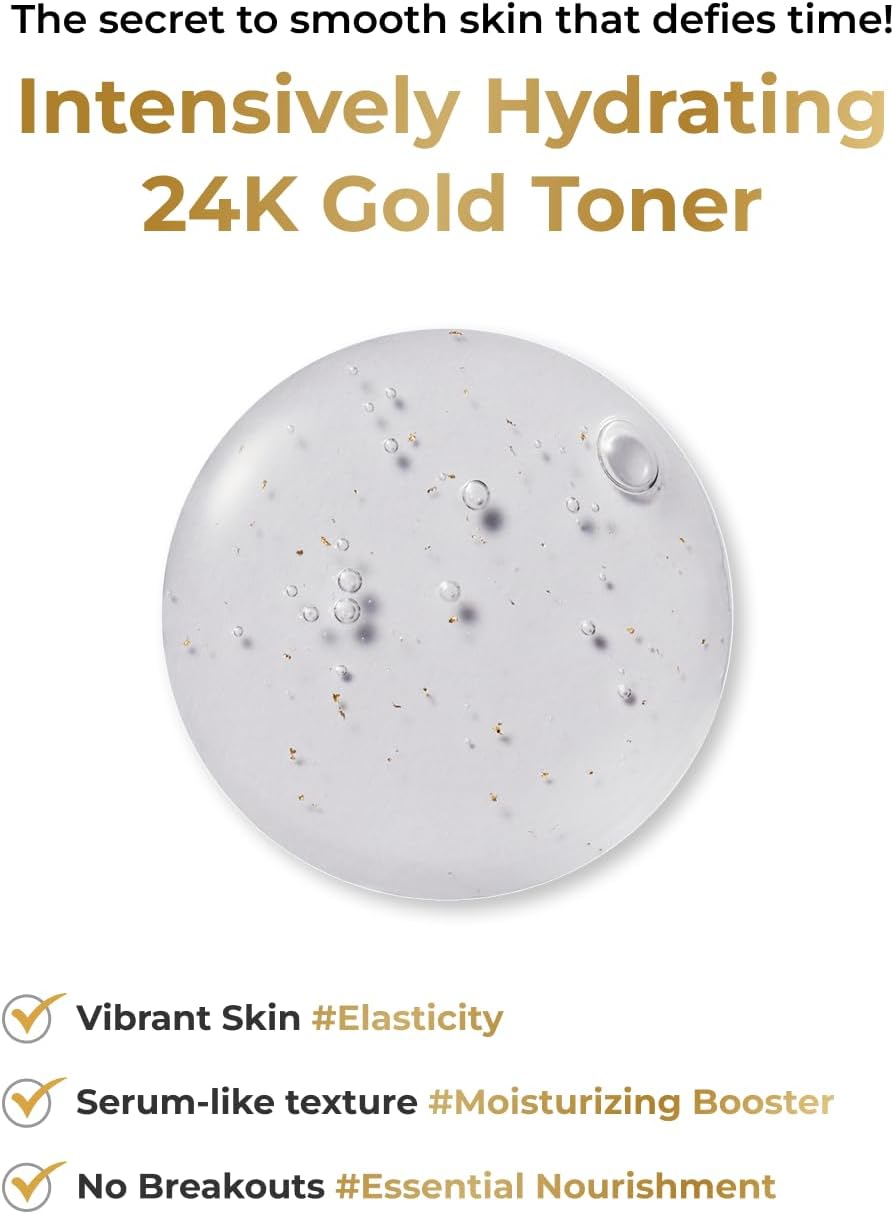- DEEP HYDRATION WITH 99% PURE GOLD: Formulated with 99% pure gold to help your skin retain its optimal moisture level, this toner lays the foundation for healthier, balanced, and well-hydrated skin