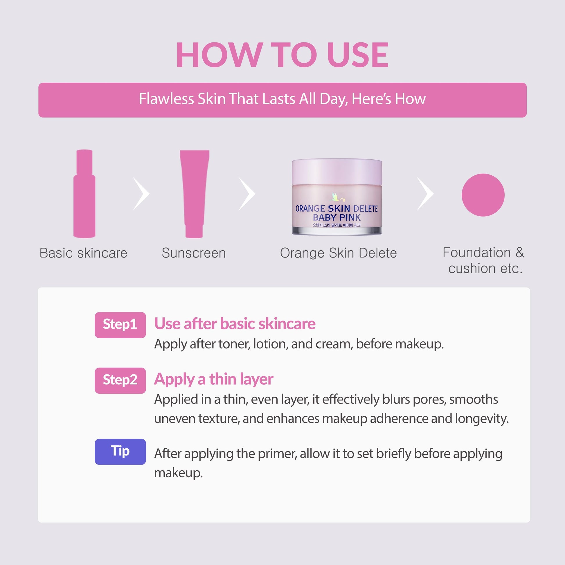 bonamedusa Orange Skin Delete Baby Pink Pore Primer Korean Makeup 30g 1.06 oz