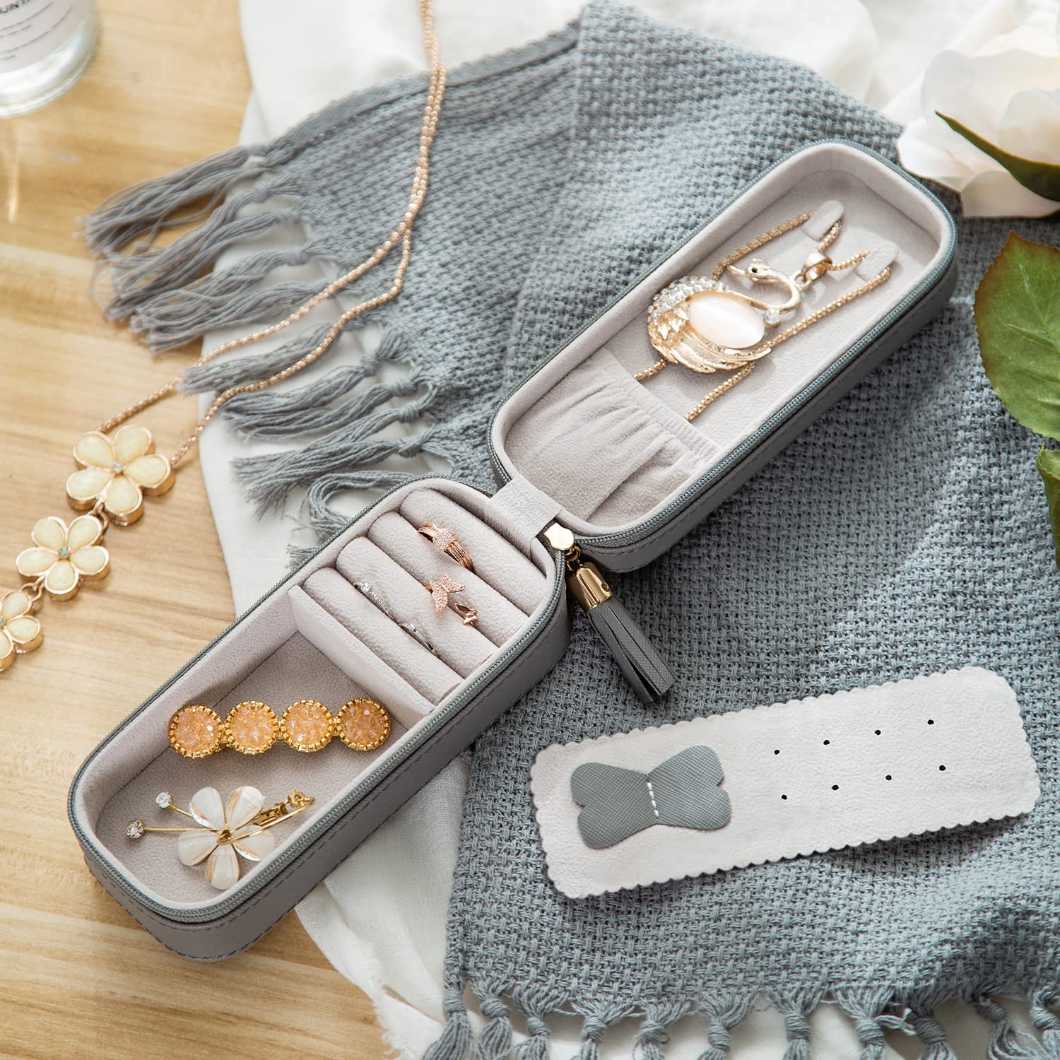 BONNY DODO Small Travel Jewelry Organizers Box for women with PU Leather Portable Mini Jewelry Case with compartments for Necklace Rings Earrings,Luxury Giftable boxes. (Gray, S)