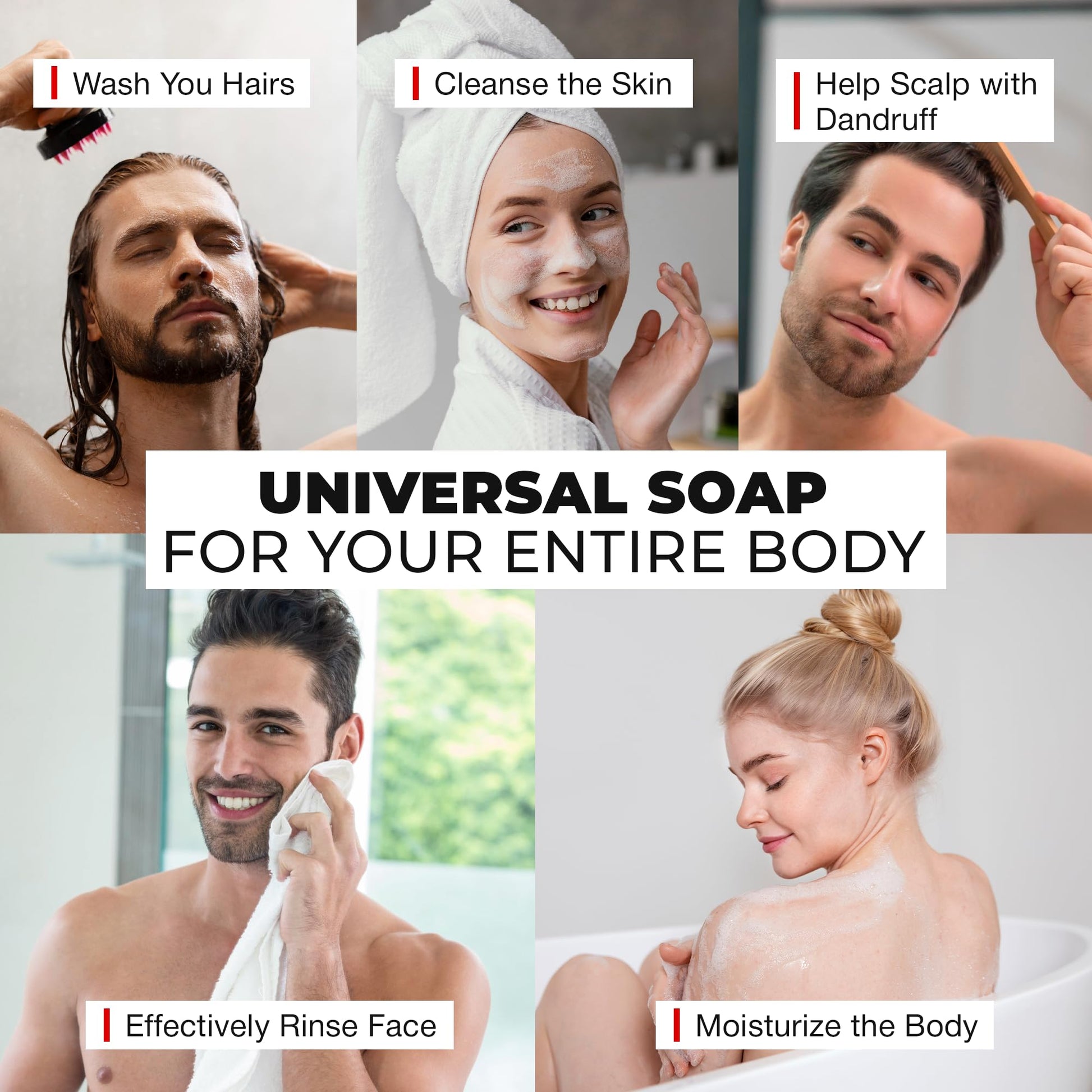 - Protects Skin Barrier: Free from harsh foaming agents that strip away natural oils. This bar soap is made with ingredients that cleanse without drying, so your skin and hair stay healthy, hydrated, and ready to take on the day.