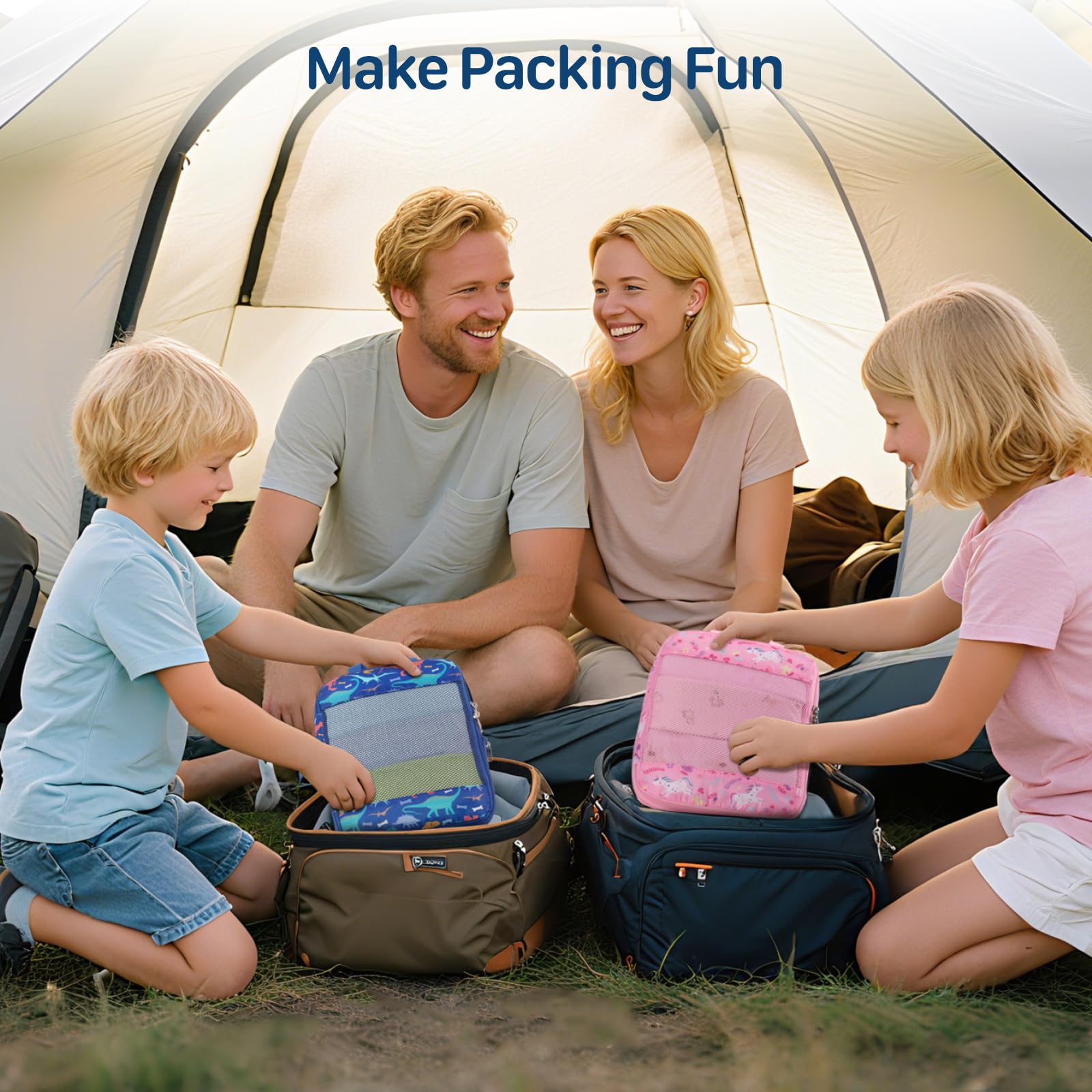 - Stress-Free Packing for Family Trips: Make travelling with kids easier than ever! This 4-piece packing cube set — including 2 medium cubes (13.8" x 9.5" x 1.4"-3.7"), 1 small cube (11.5" x 8.6" x 1.4"-3.7"), and 1 shoe bag — keeps your child's clothes, shoes, and essentials neatly organized and easy to find.
