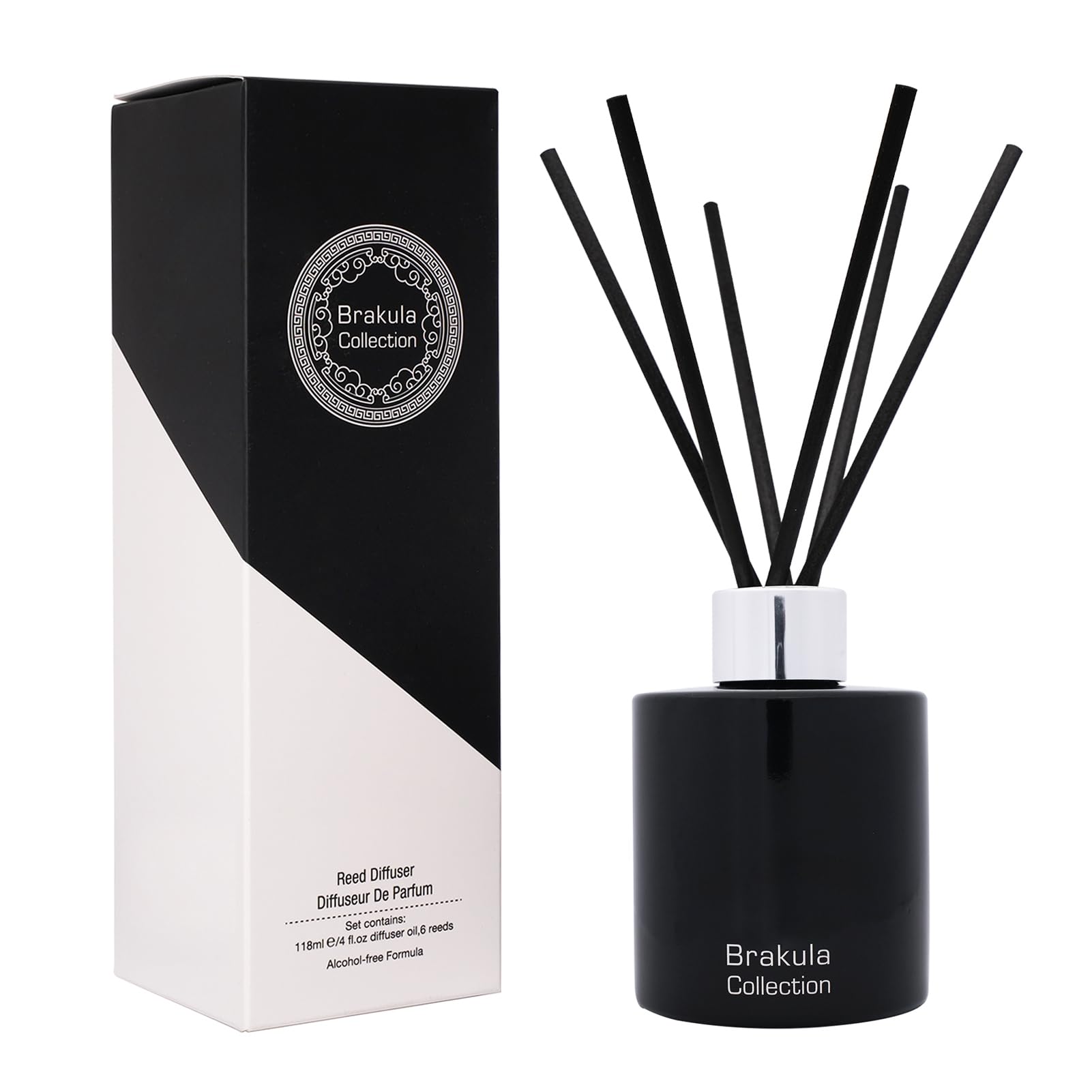 - [ Floral Aroma Reed Diffuser] Great Choice for all season feeling tone. Opening the exquisite aromatherapy reed diffuser box, you can get: black rods (6 pcs), scented reed oil (4 ounces), dreamy and charming frosted glass decorative bottle.