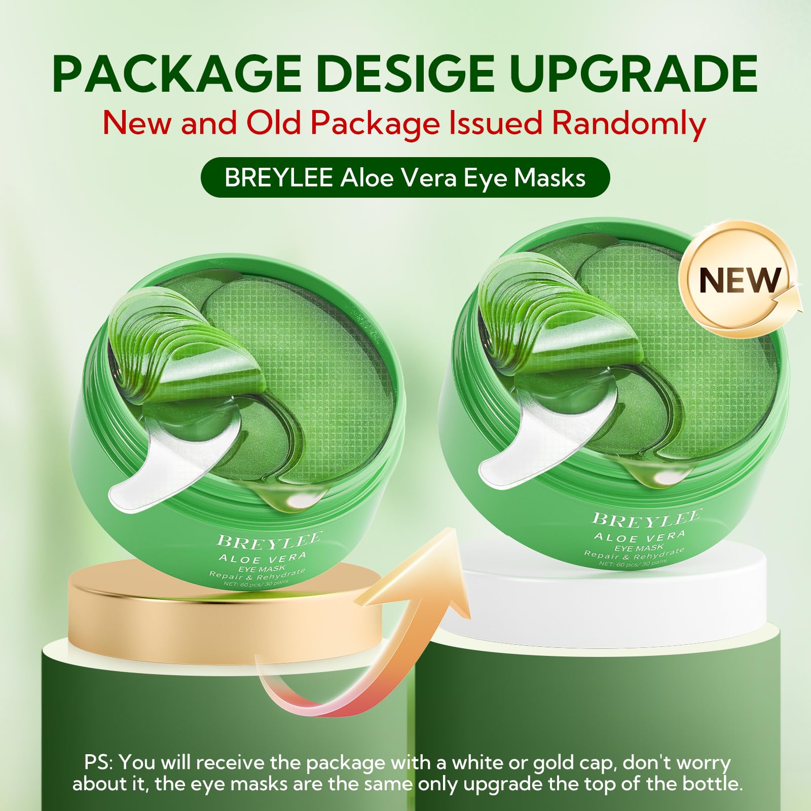 BREYLEE Aloe Vera Eye Masks - 60 Pcs - Reduce Puffy Eyes & Dark Circles, Firm & Improve Under Eye Skin, Pure Natural Extracts for Youthful Appearance & Reduction of Fine Lines and Wrinkles.