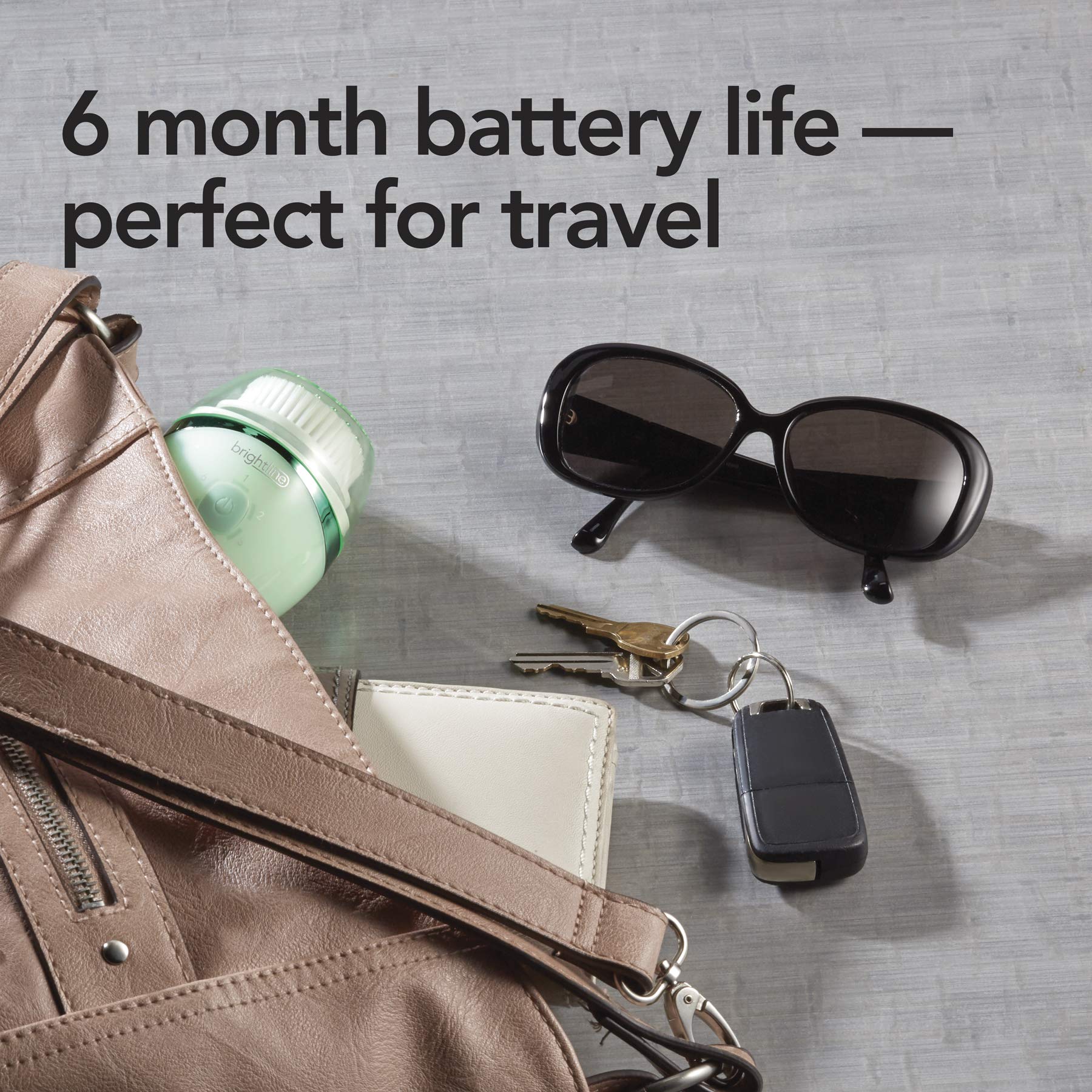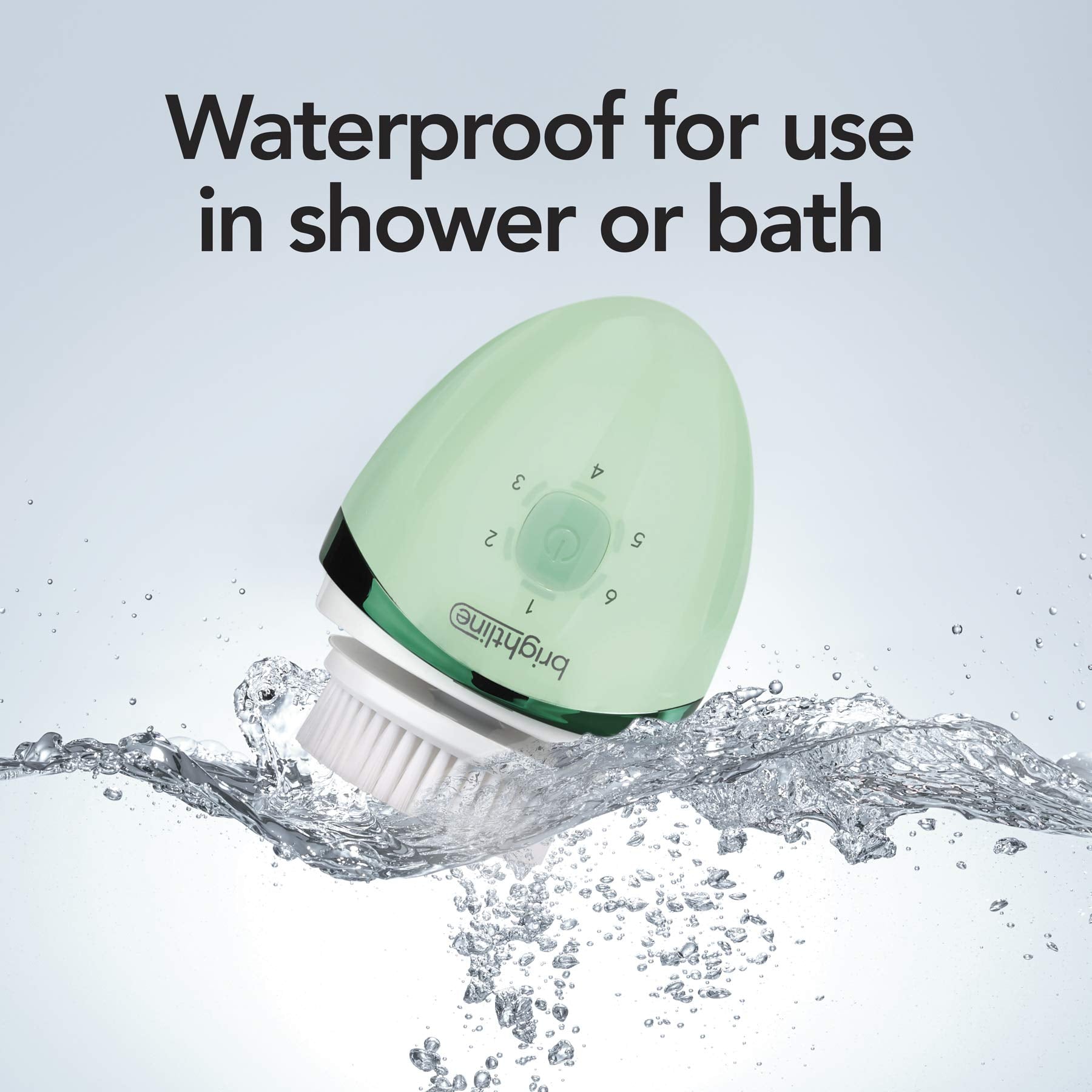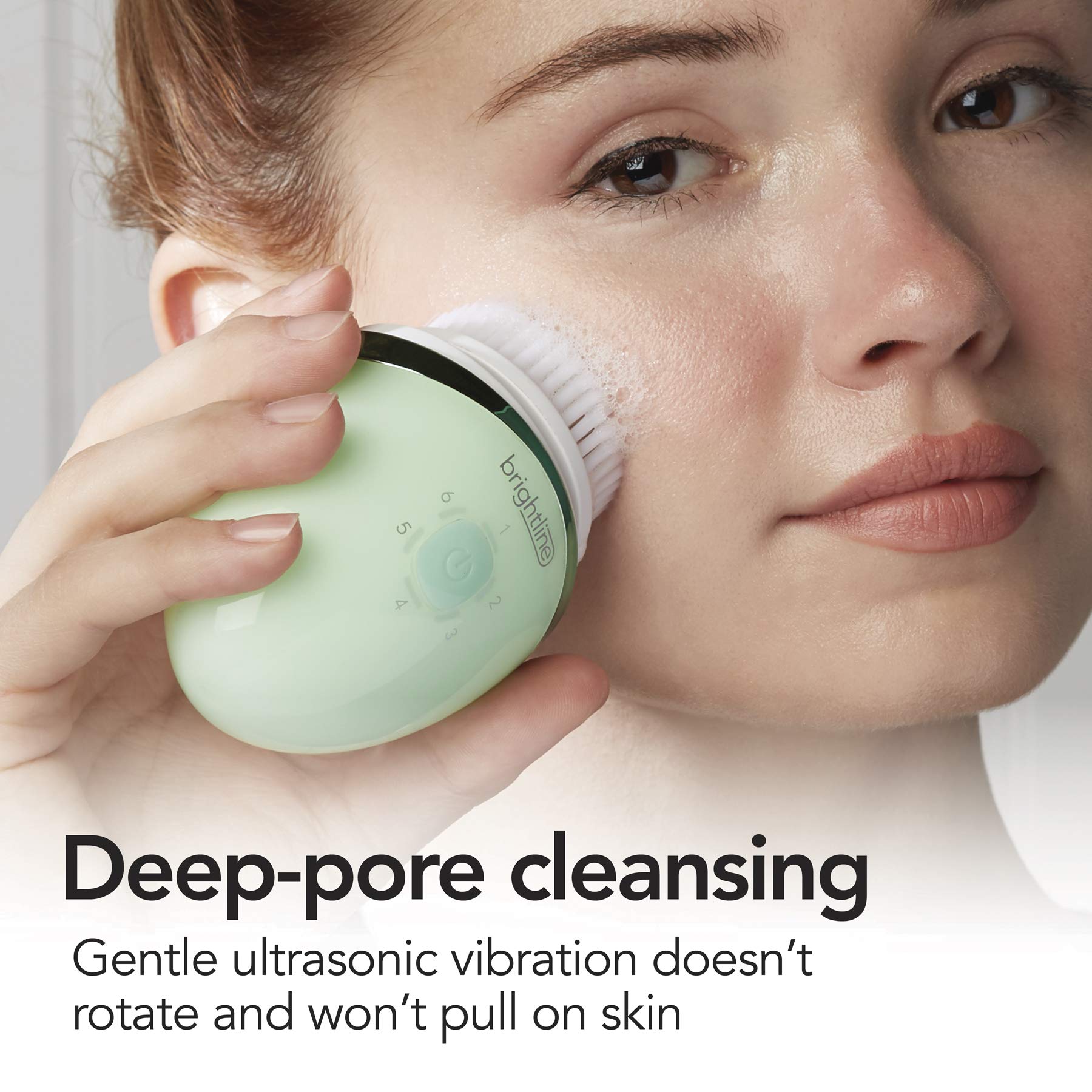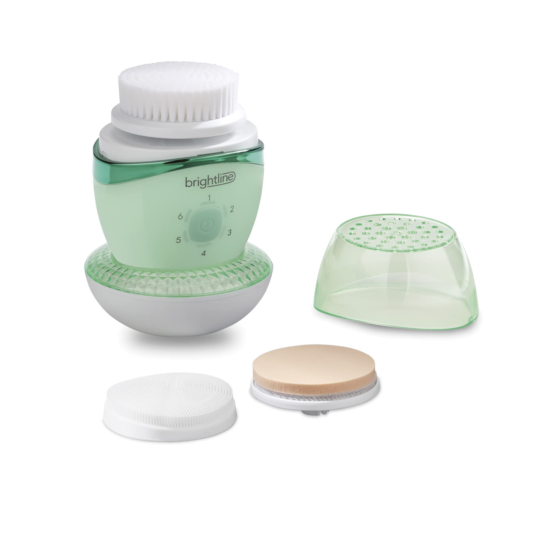 Brightline Sonic Rechargeable Electric Facial Cleansing Brush System, Face Exfoliator with 6 Intensity Settings, 3 Scrub Brush Heads, Green