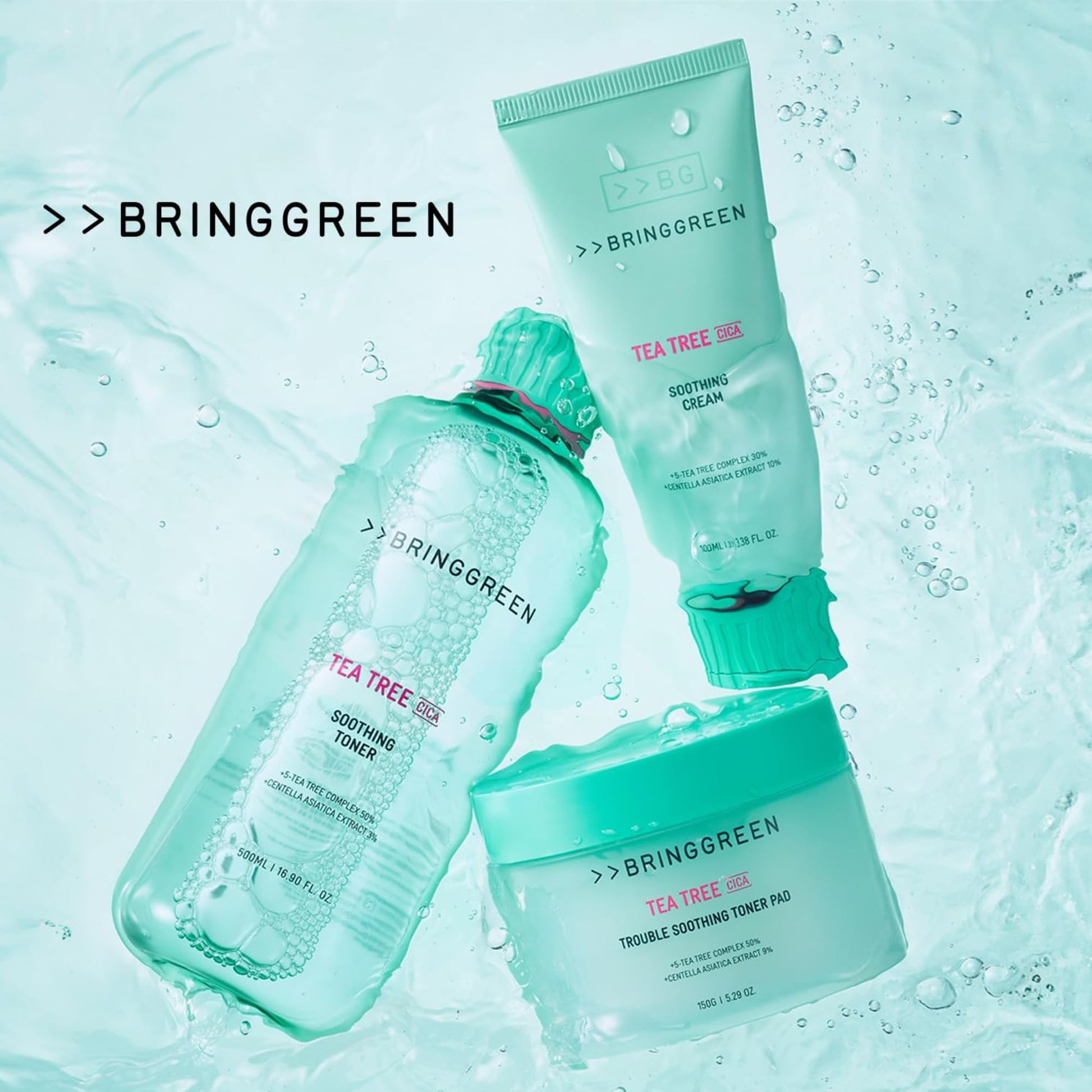 - [BRING GREEN] GOO:D SK1N GOO:D V1BE! Bring Green Tea Tree Cica skin care line has been renewed providing extra moisturization and calming effect. Enjoy your skincare routine.