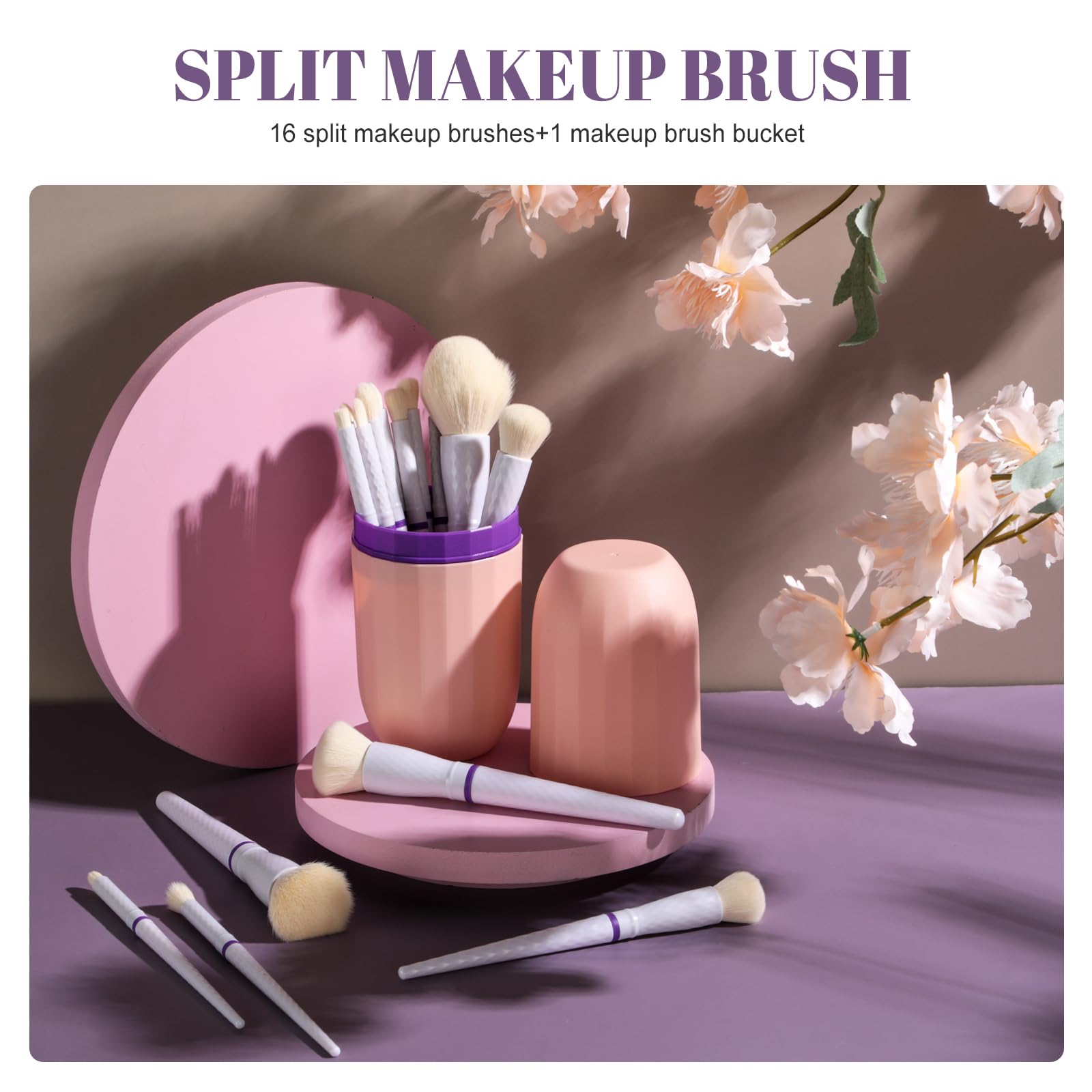 Details: BS-MALL Travel Makeup Brushes – Professional and Durable 16-piece Se tDetachable Rotating Handles, Eco-Friendly Design, Comes with Storage Barrel(white Travel Case)