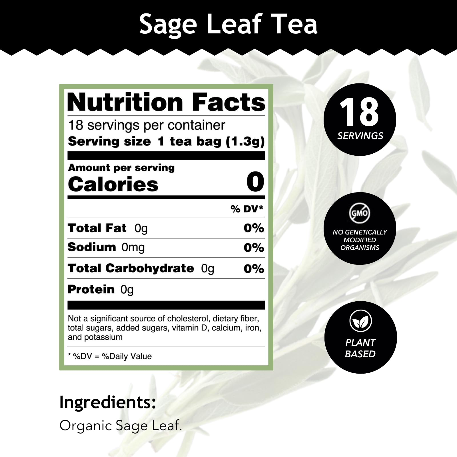 - NO CAFFEINE - Our Sage Leaf Tea is caffeine free, certified organic and free of any additives and flavoring. This tea has no artificial sweeteners and is only made with a natural single-ingredient.