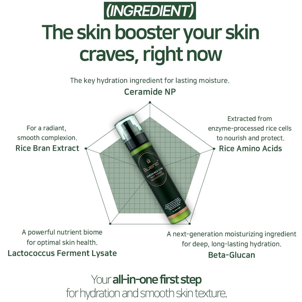 Bueno Icheon Rice Core Mist Toner, 3.55 fl.oz | Spray Toner with Icheon Rice Amino Acids for Soothing & Hydration | 100% Vegan Formula, Korean Skin Care