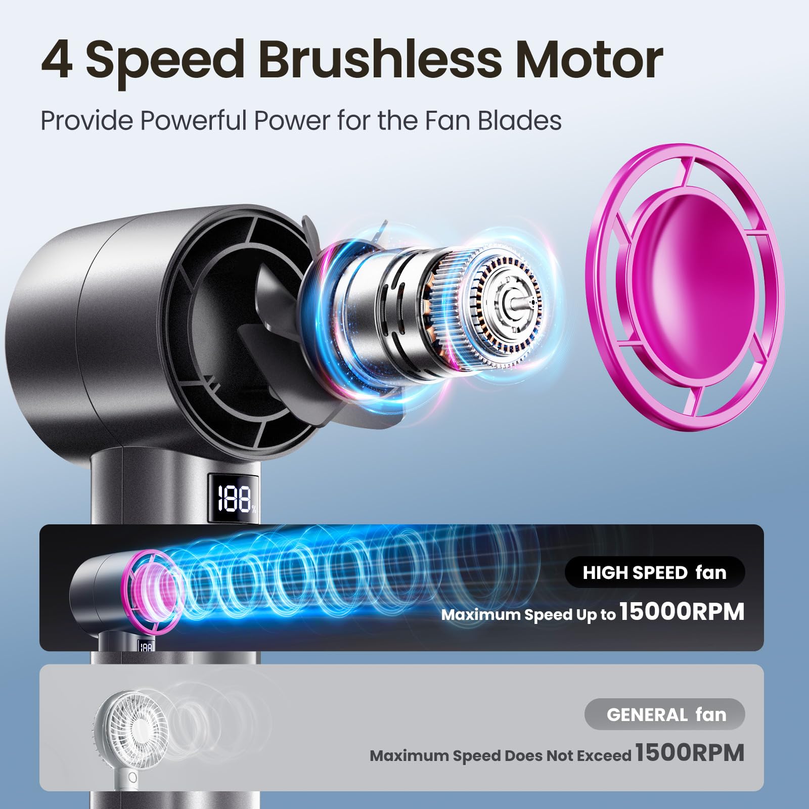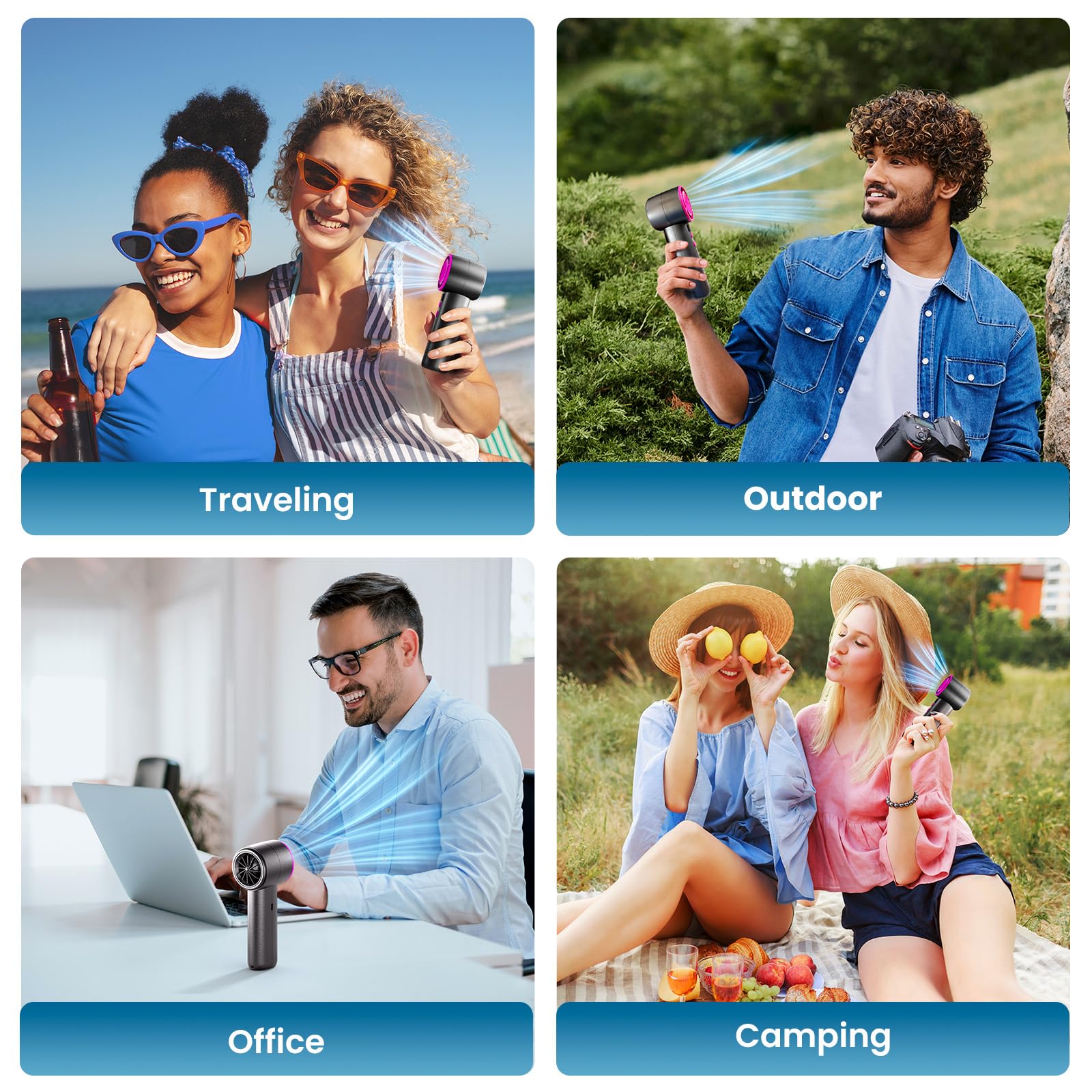 - Built-in Turbine Blades - Super Power: The maximum wind speed can reach 10m/s, the highest rotation speed of the handheld fan reach up to 15000 RPM. This hand fan can quickly cool you down in hot weather